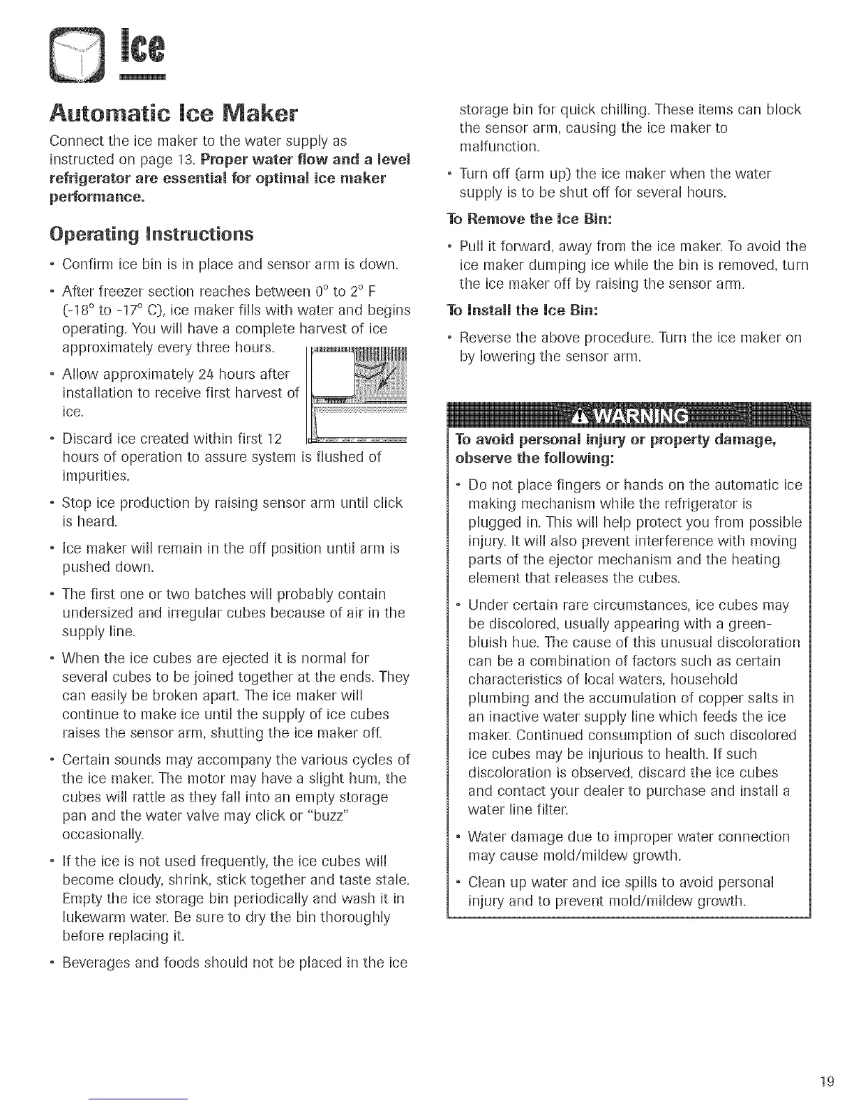 , Do not place fingers or hands on the automatic ice