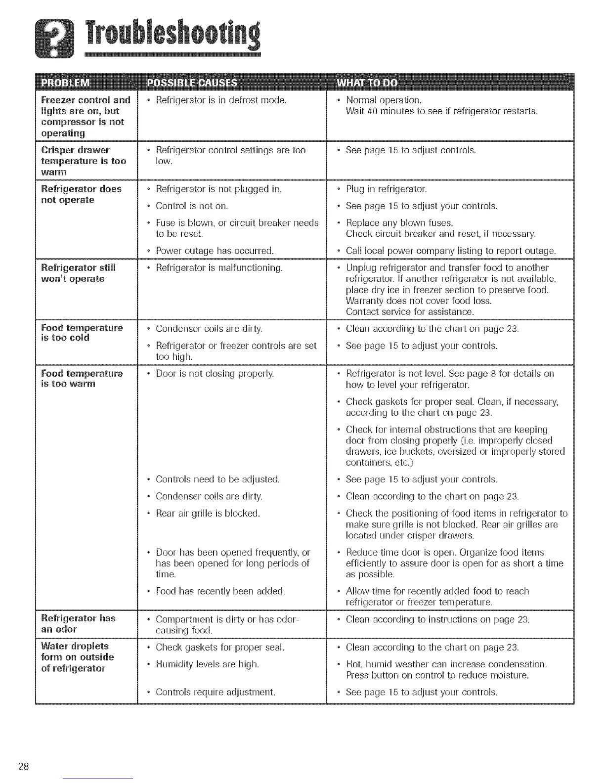 Crisper drawer , Refrigerator control setthlgs are too " See page 15 to adjust controls_