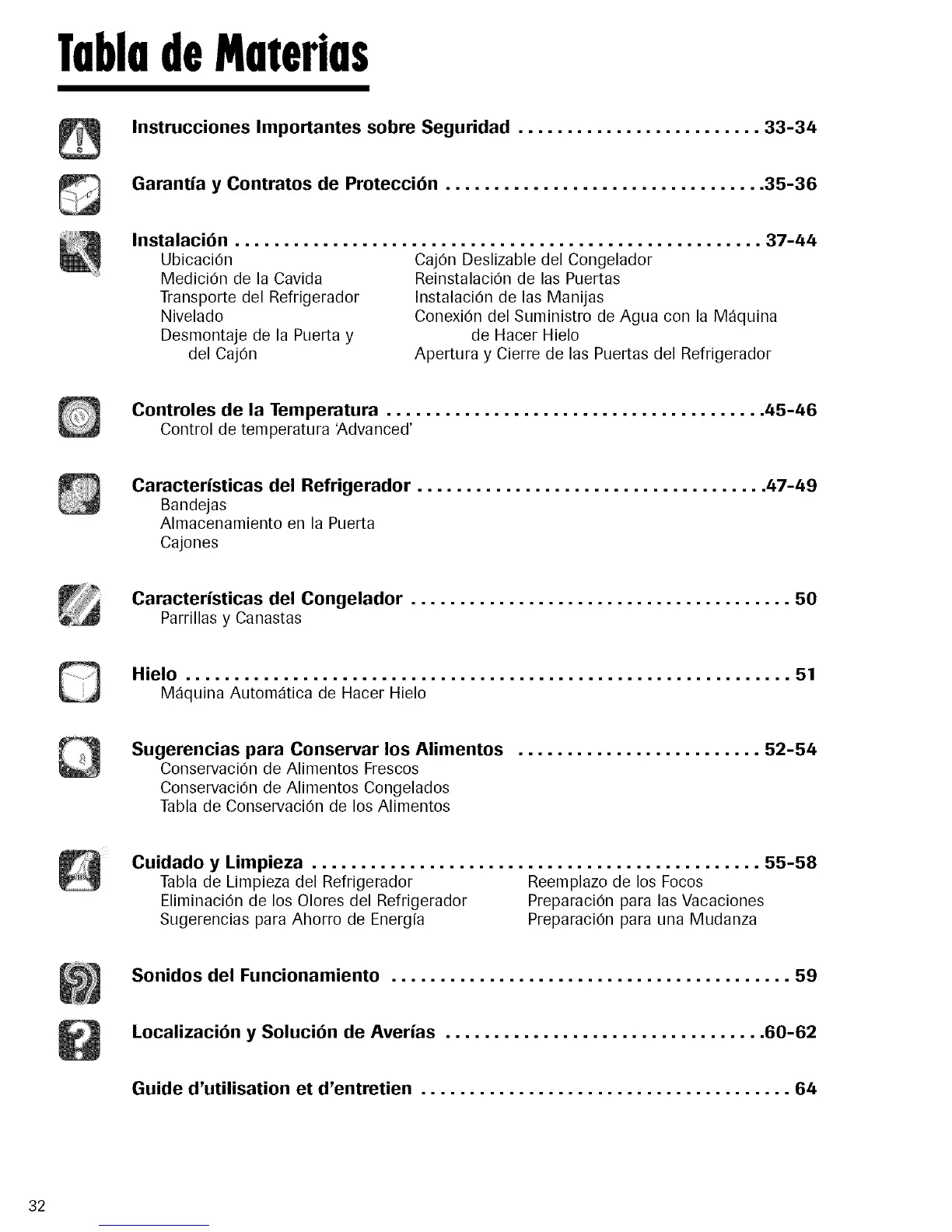 Controles de la Temperatura ....................................... 45-46