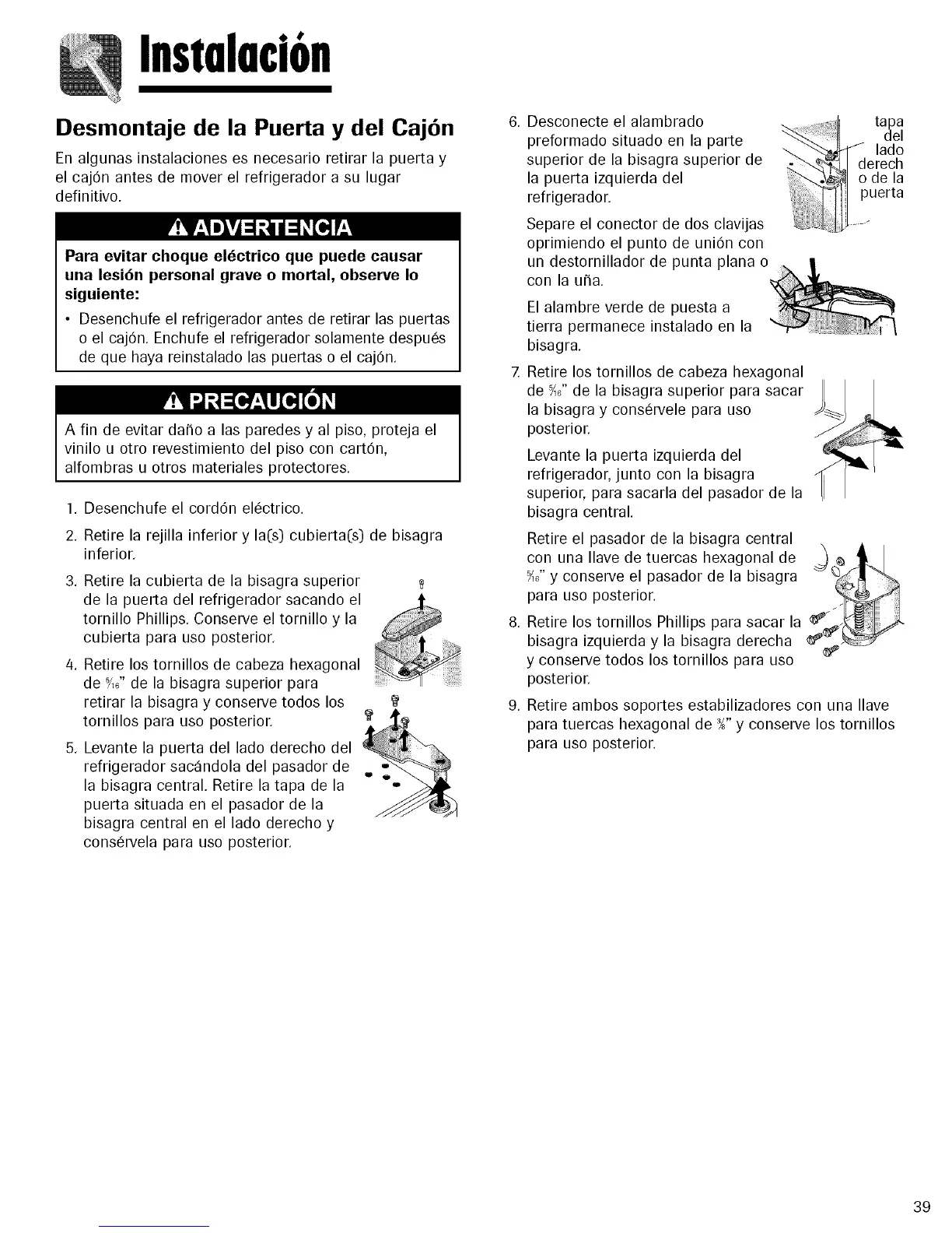 A fin de evitar da_o alas paredes y al piso, proteja el