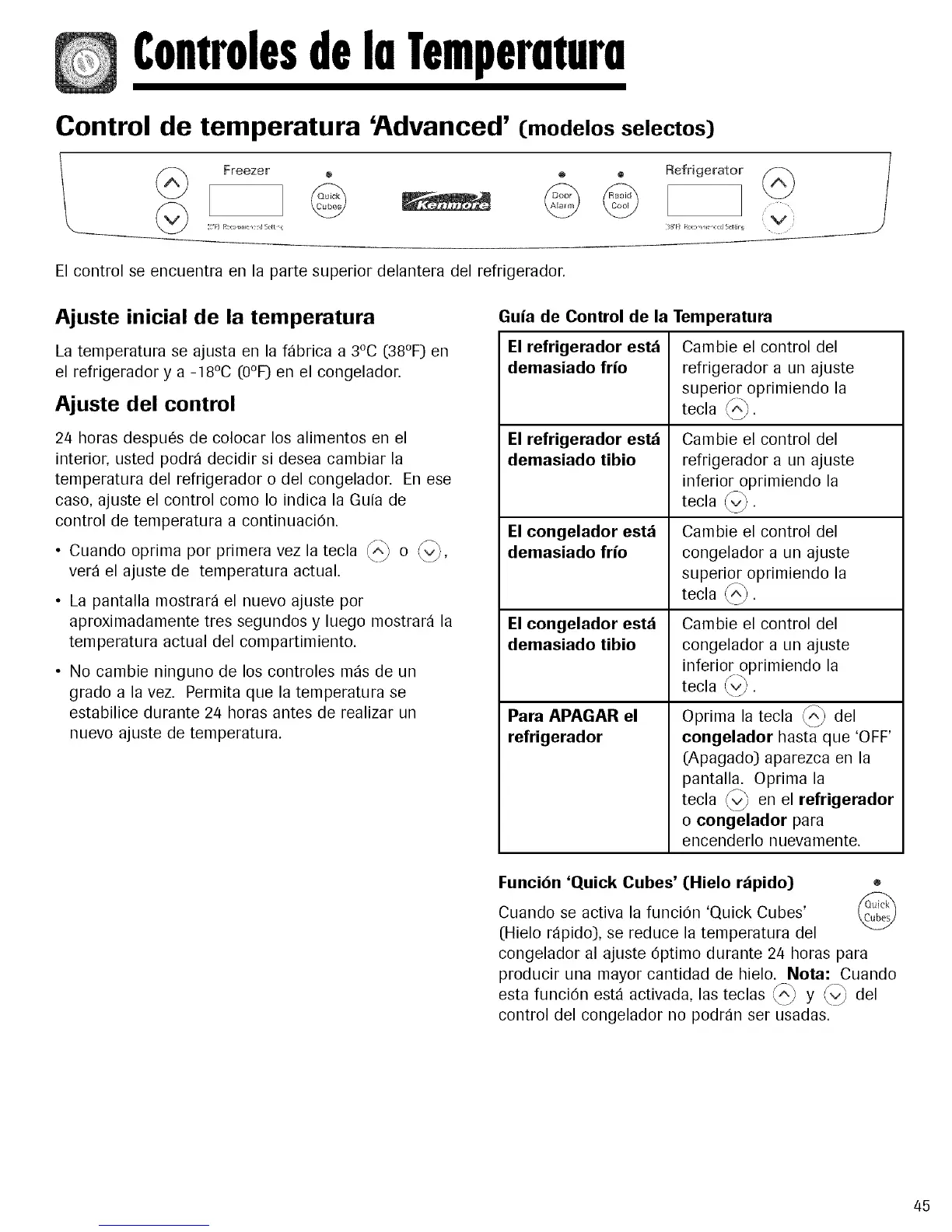 Funci6n 'Quick Cubes' (Hielo r_pido) o