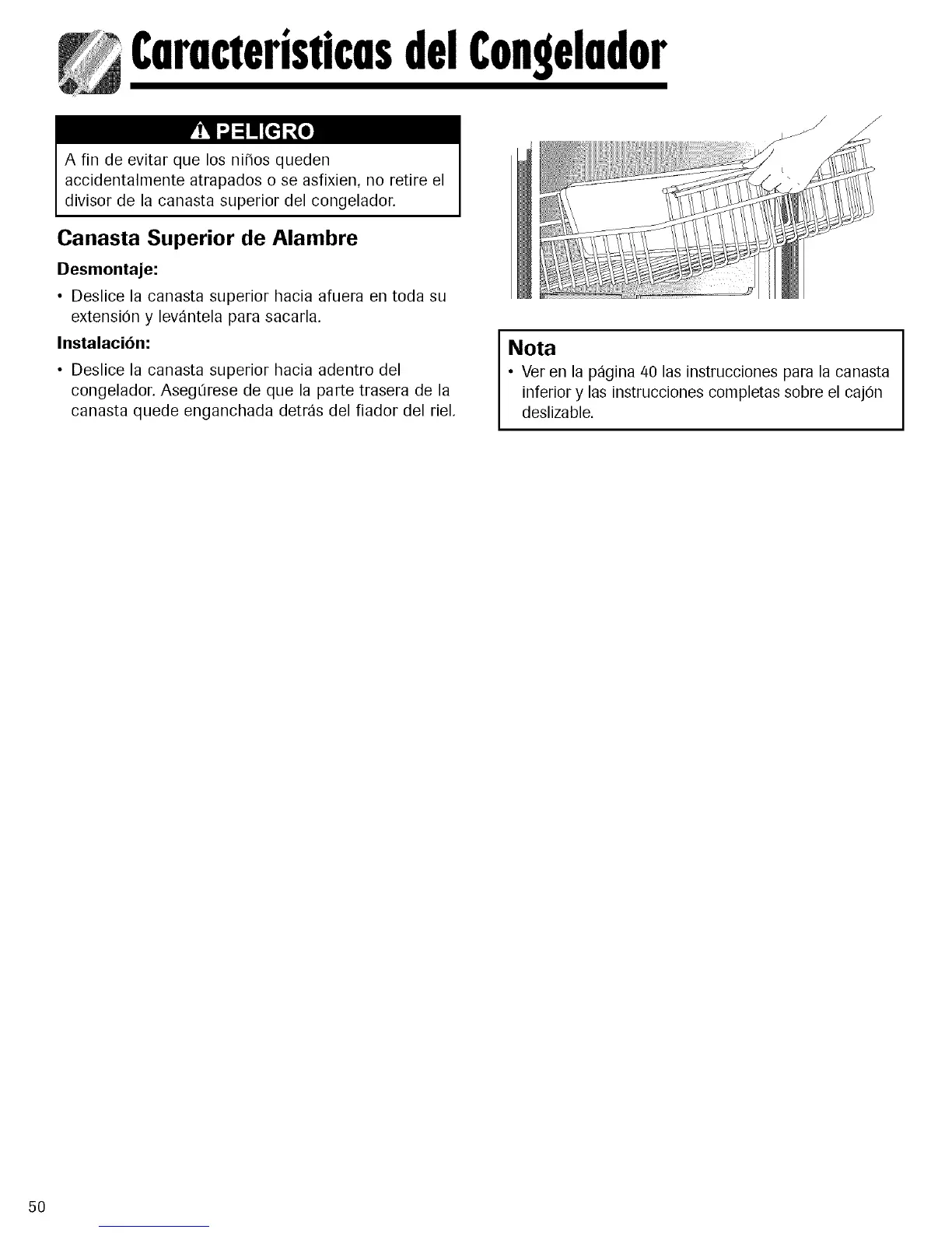 • Ver en la p_gina 40 las instrucciones para la canasta