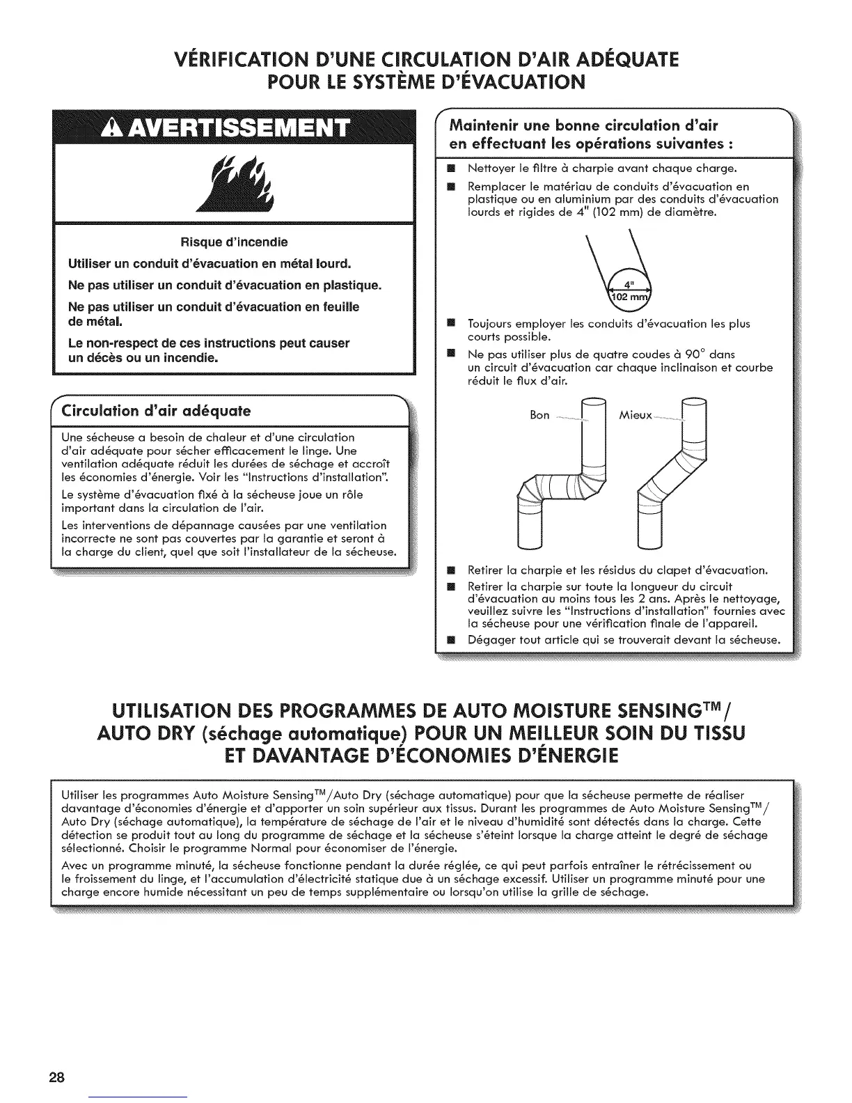 Utiliser les programmes Auto Moisture SensingTM/Auto Dry (s6chage automatique) pour que la s6cheuse permette de r_aliser