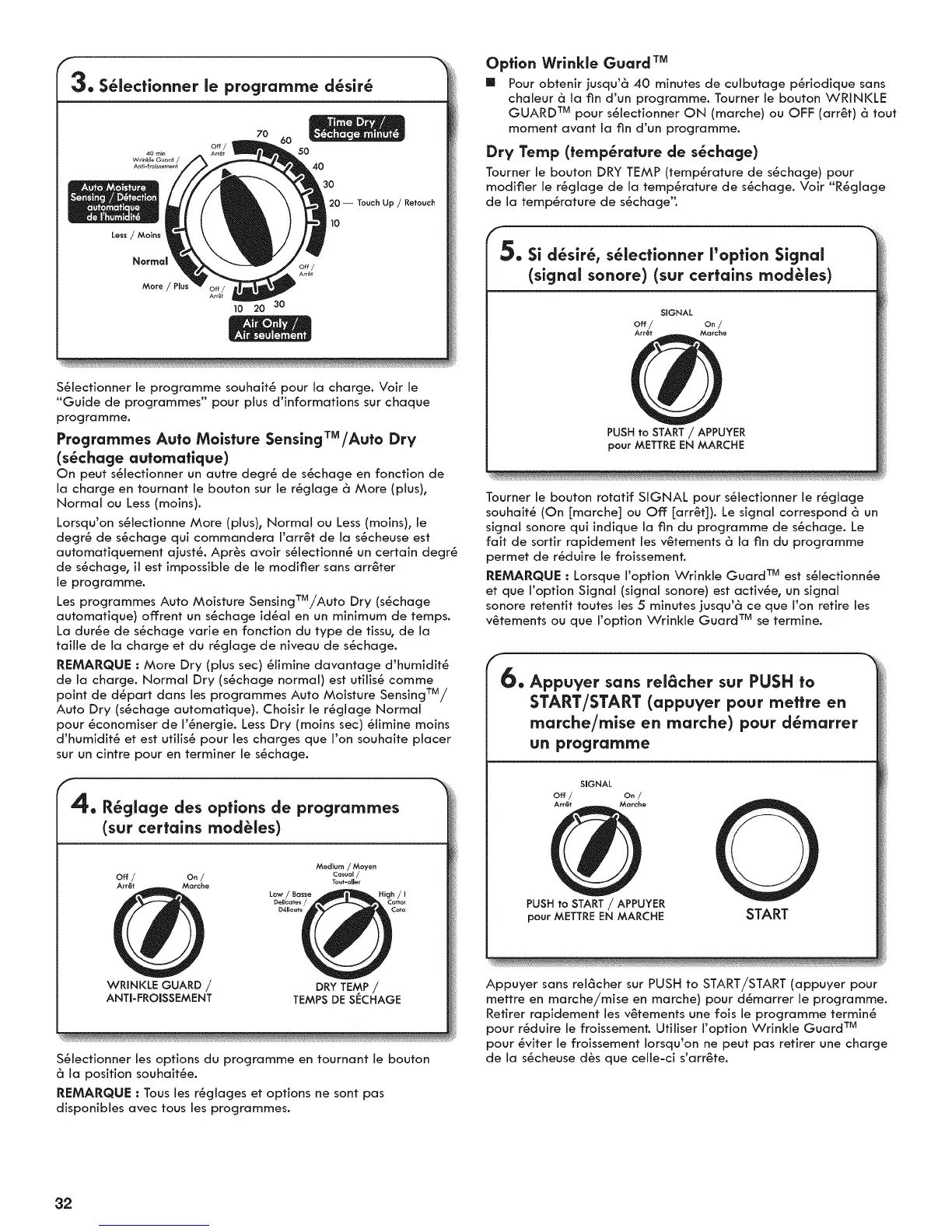 Progrornmes Auto Moisture Senslng TM/AutO Dry