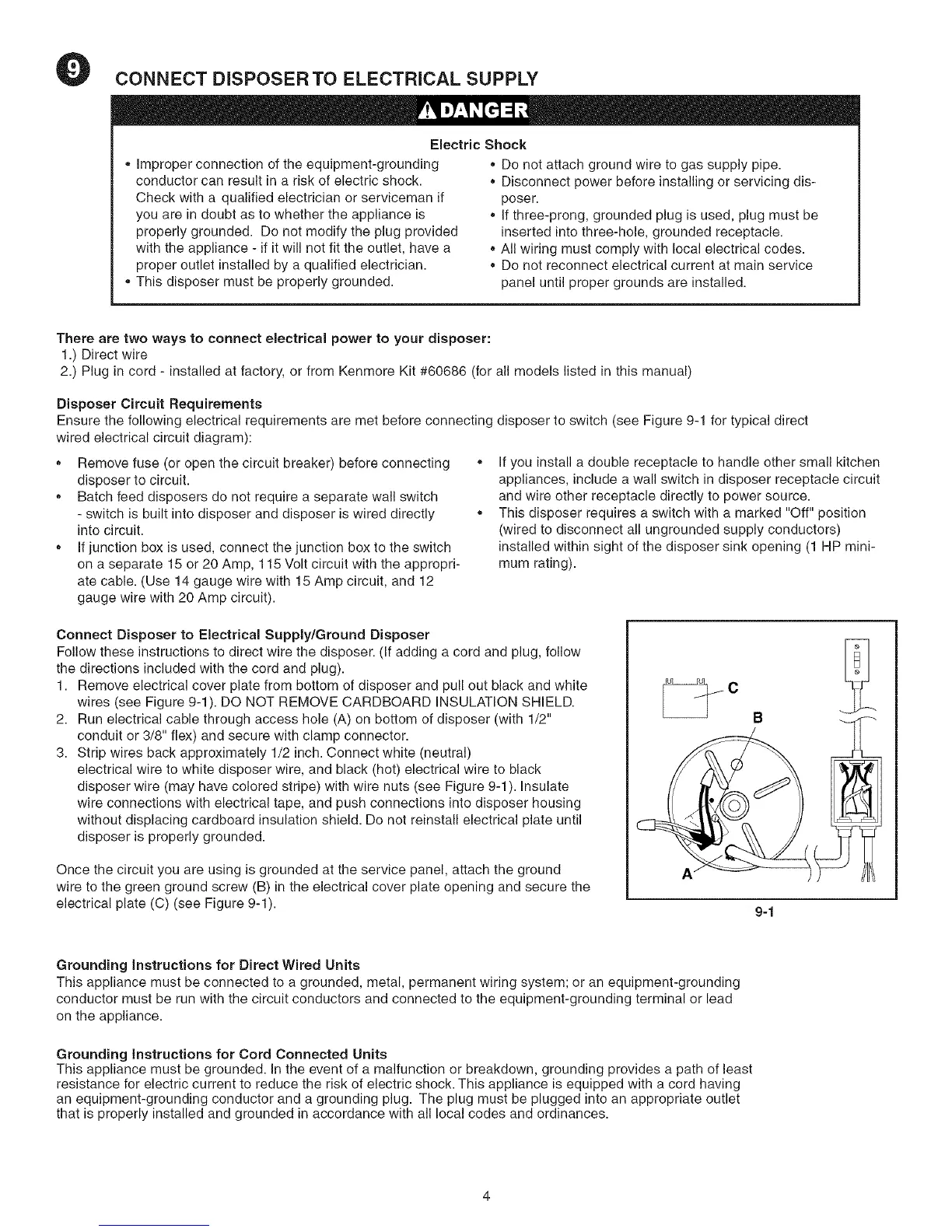 disposer wire (may have colored stripe) with wire nuts (see Figure 9-1). Insulate