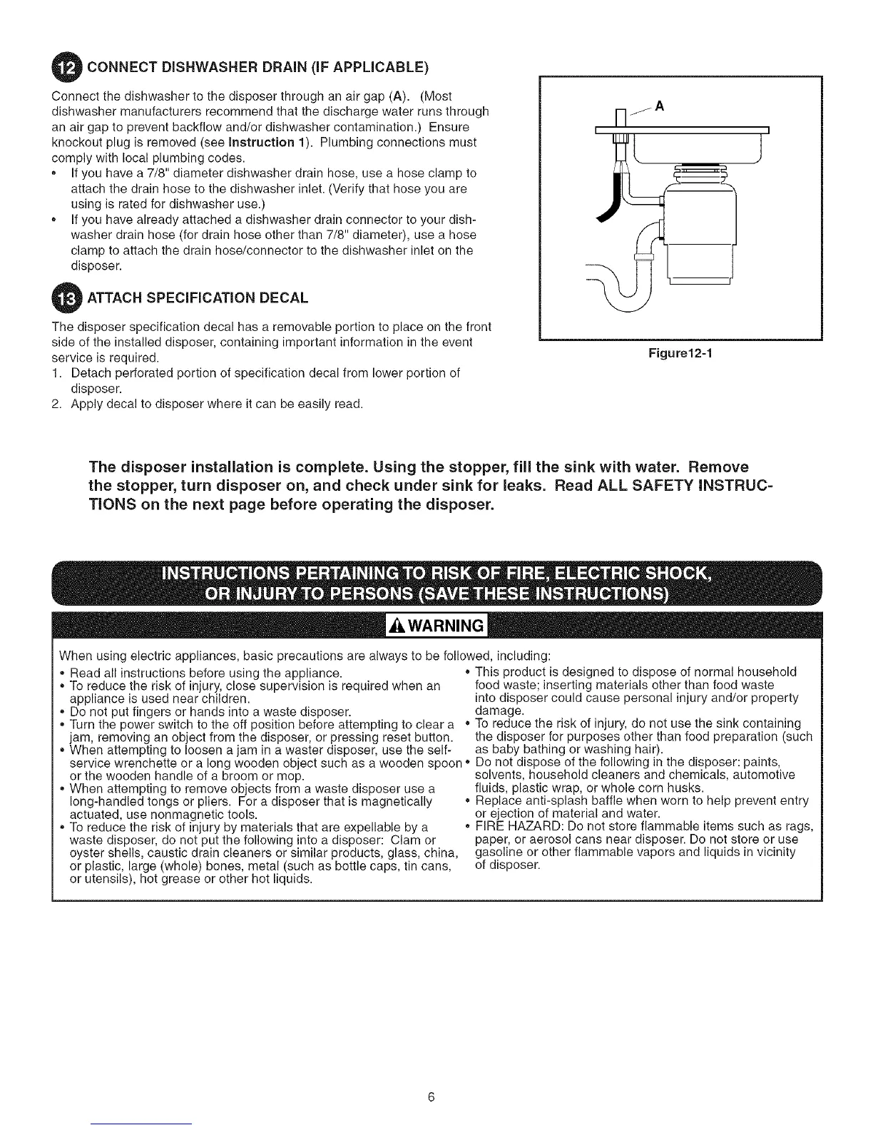 the stopper, turn disposer on, and check under sink for leaks. Read ALL SAFETY INSTRUC=
