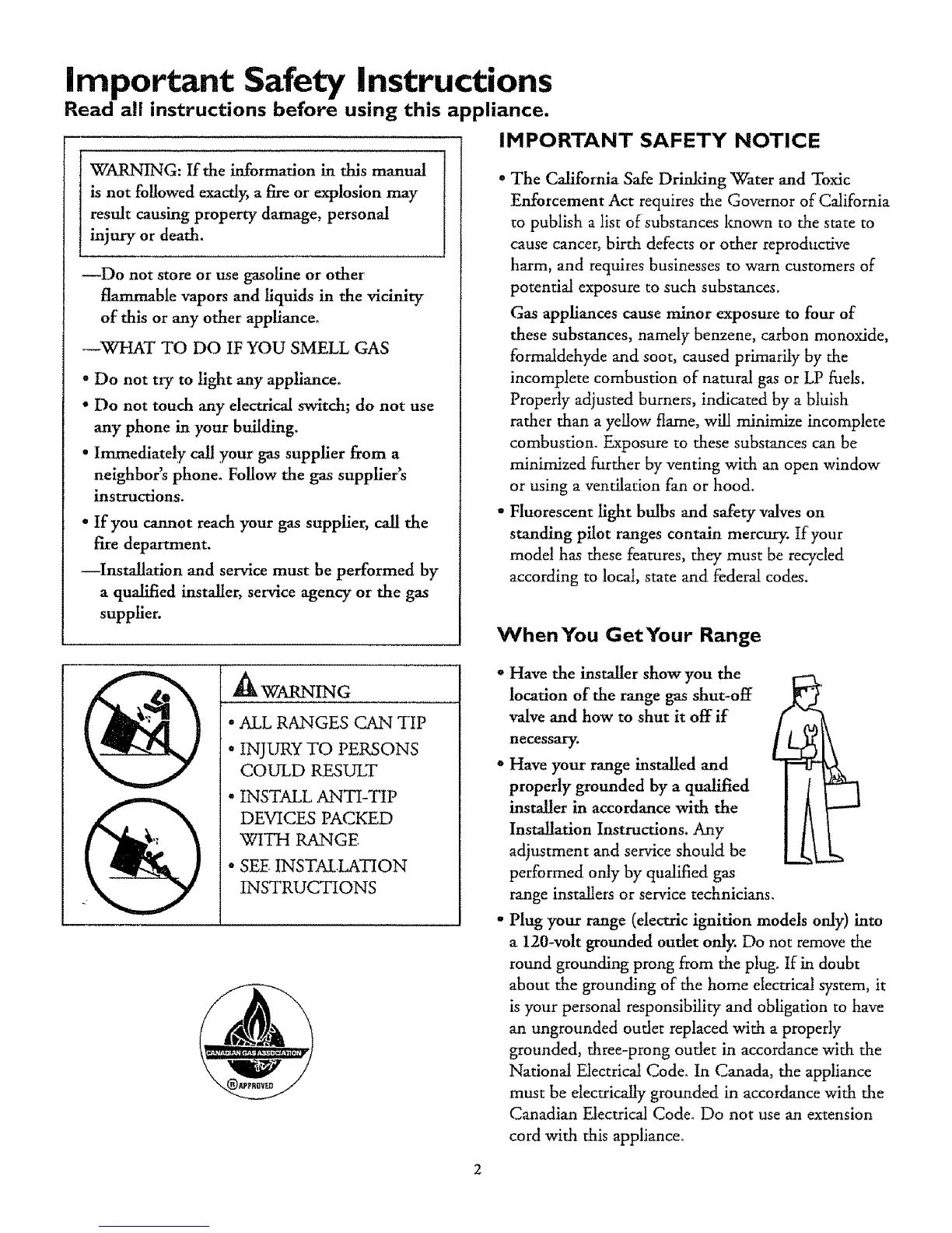National Electrical Code. tn Canada, the appliance