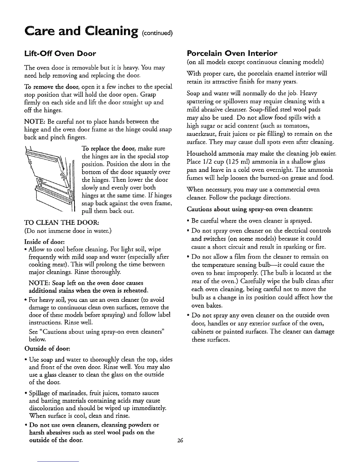 ° Do not use oven cleaners, cleansing powders or