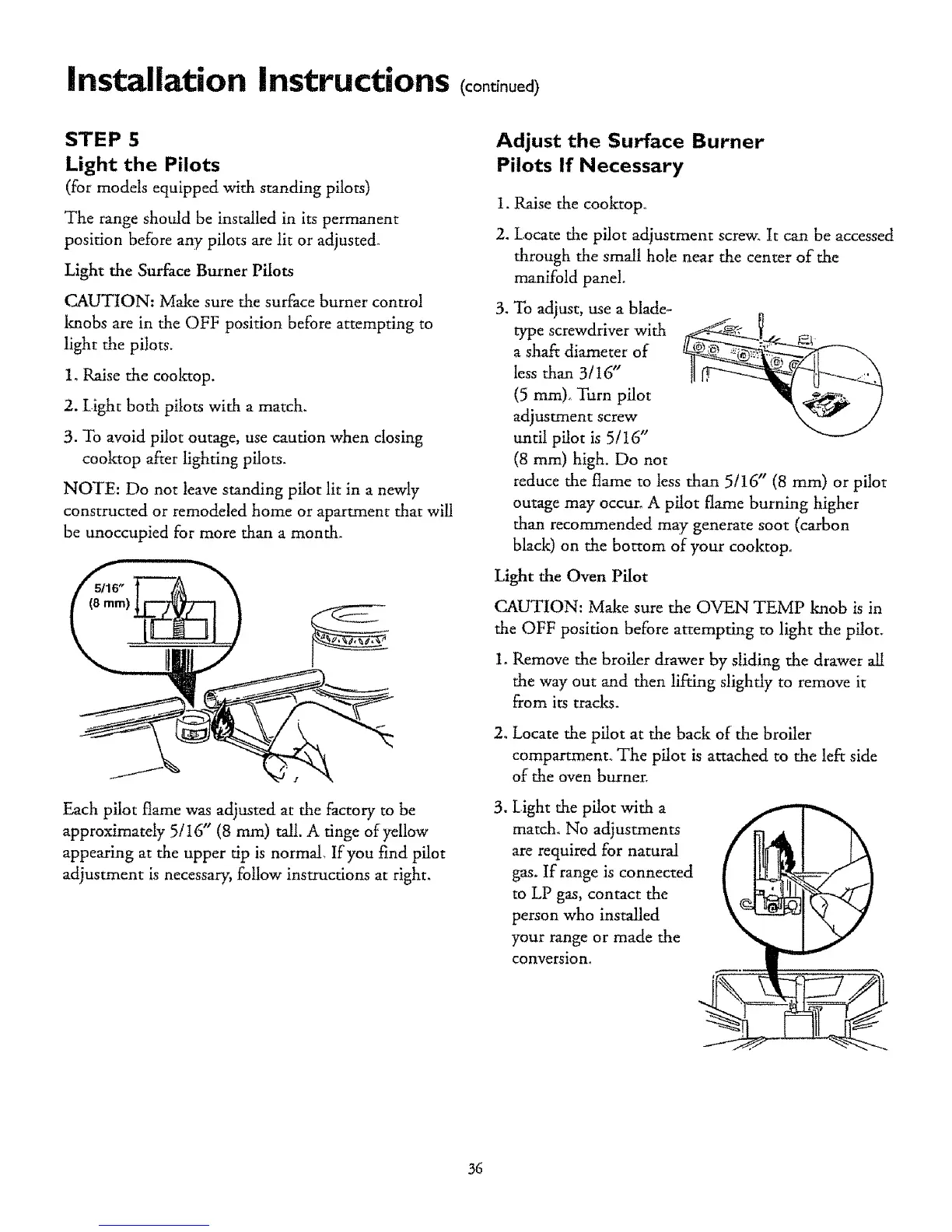 reduce the flame to tess than 5116" (8 mm) or pilot