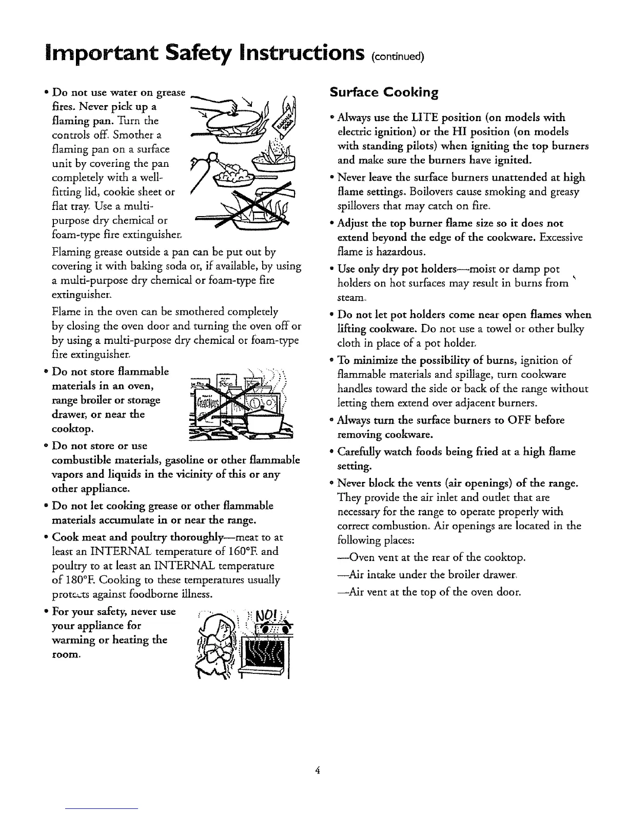 ° Do not let cooking grease or other flammable