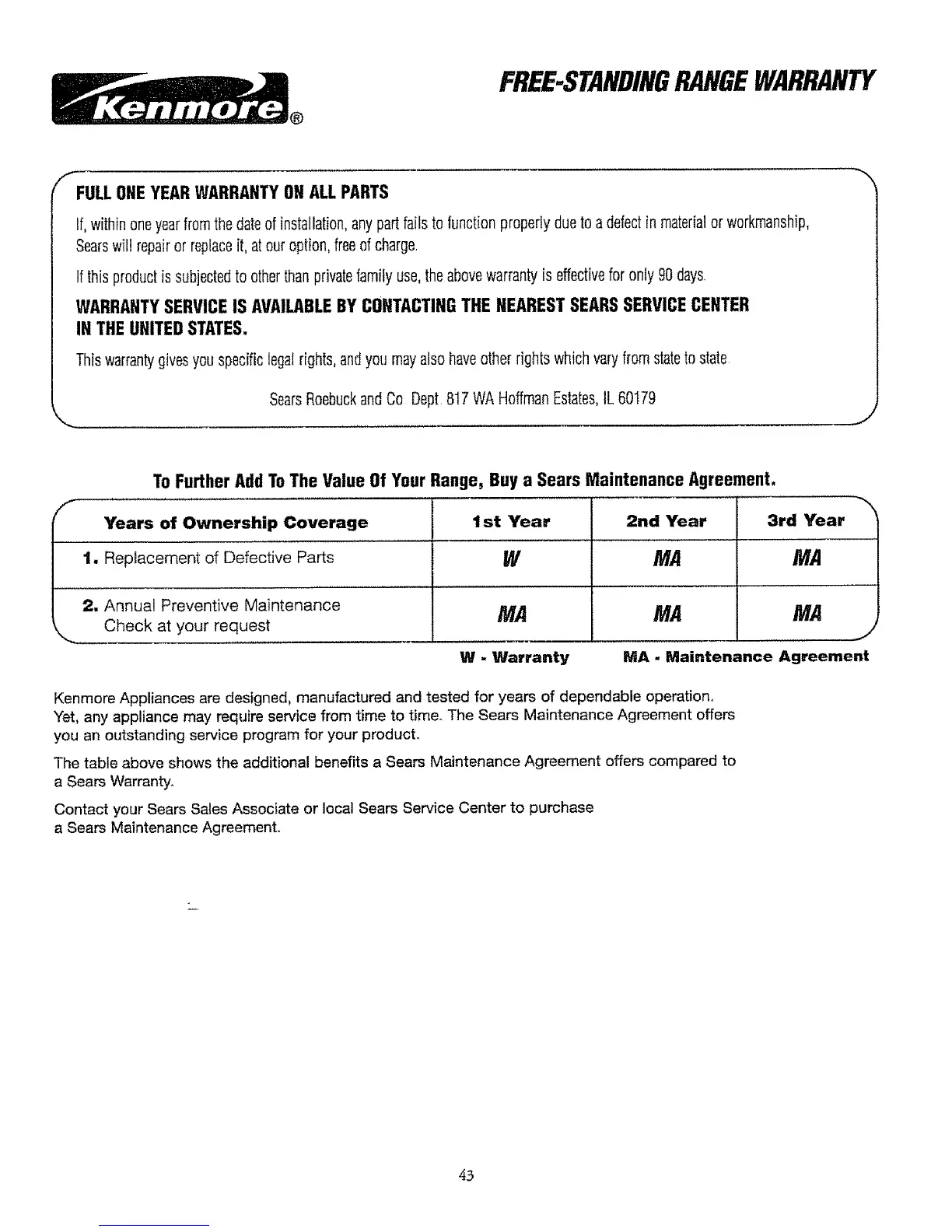 To Further Add To The Value Of Your Range, Buy a Sears Maintenance Agreement.