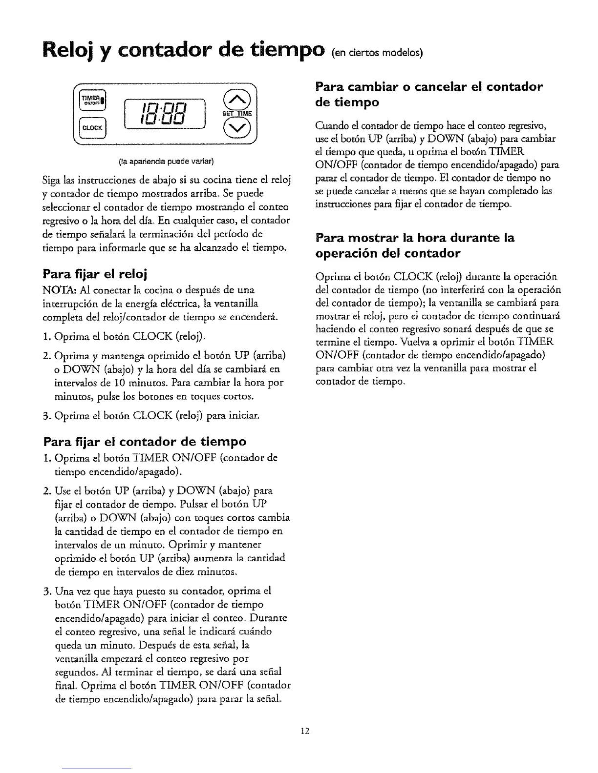 Siga las instrucciones de abajo si su cocina dene el reloj