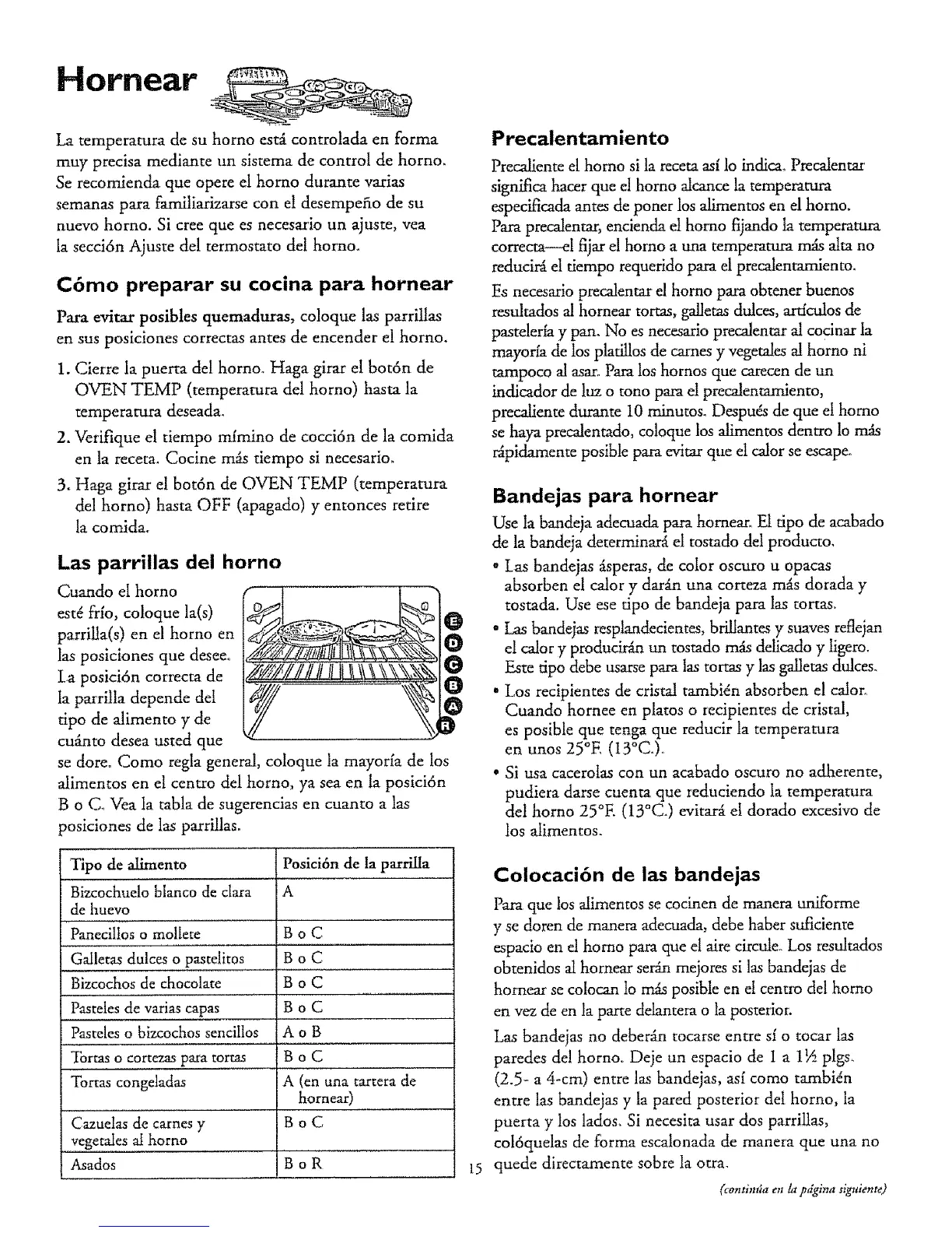Use Ia bandeja adecuada para hornear. H tipo de acabado