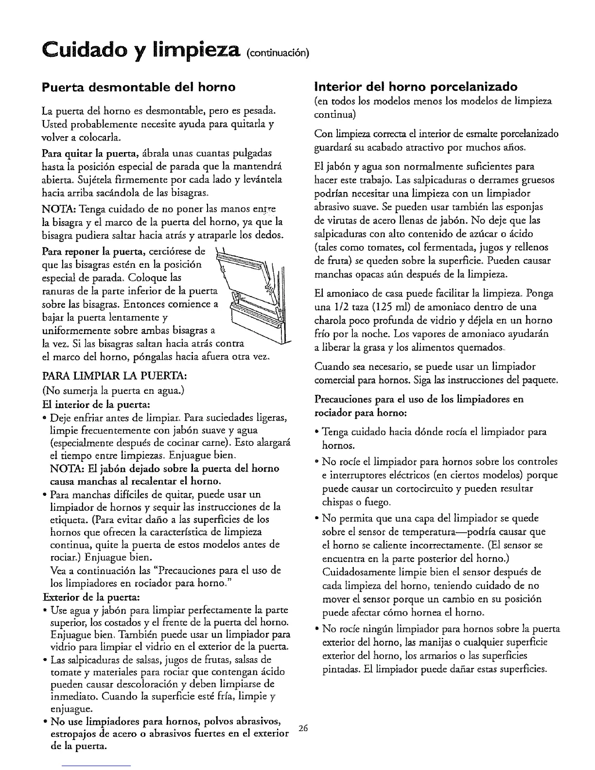 • No rocfe ningiln limpiador para hornos sobre la puerra