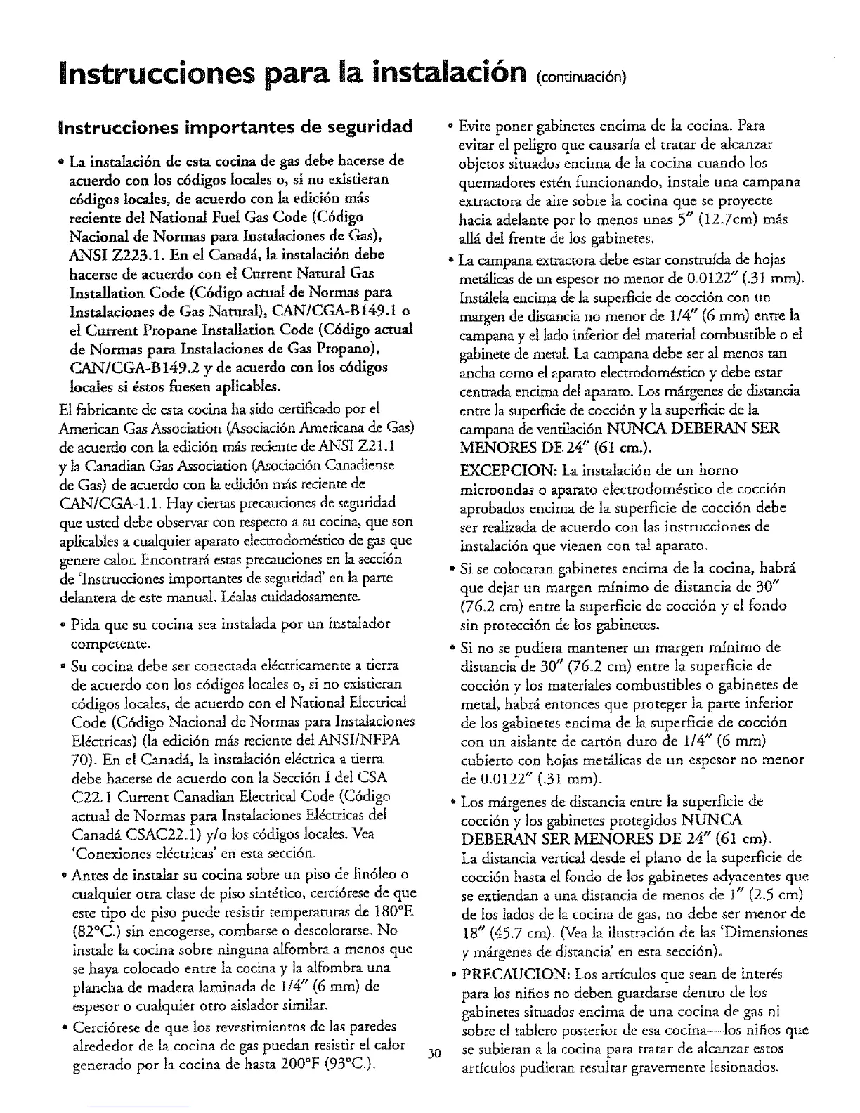 ANSI Z223.1. En el Canada, la instalaci6n debe