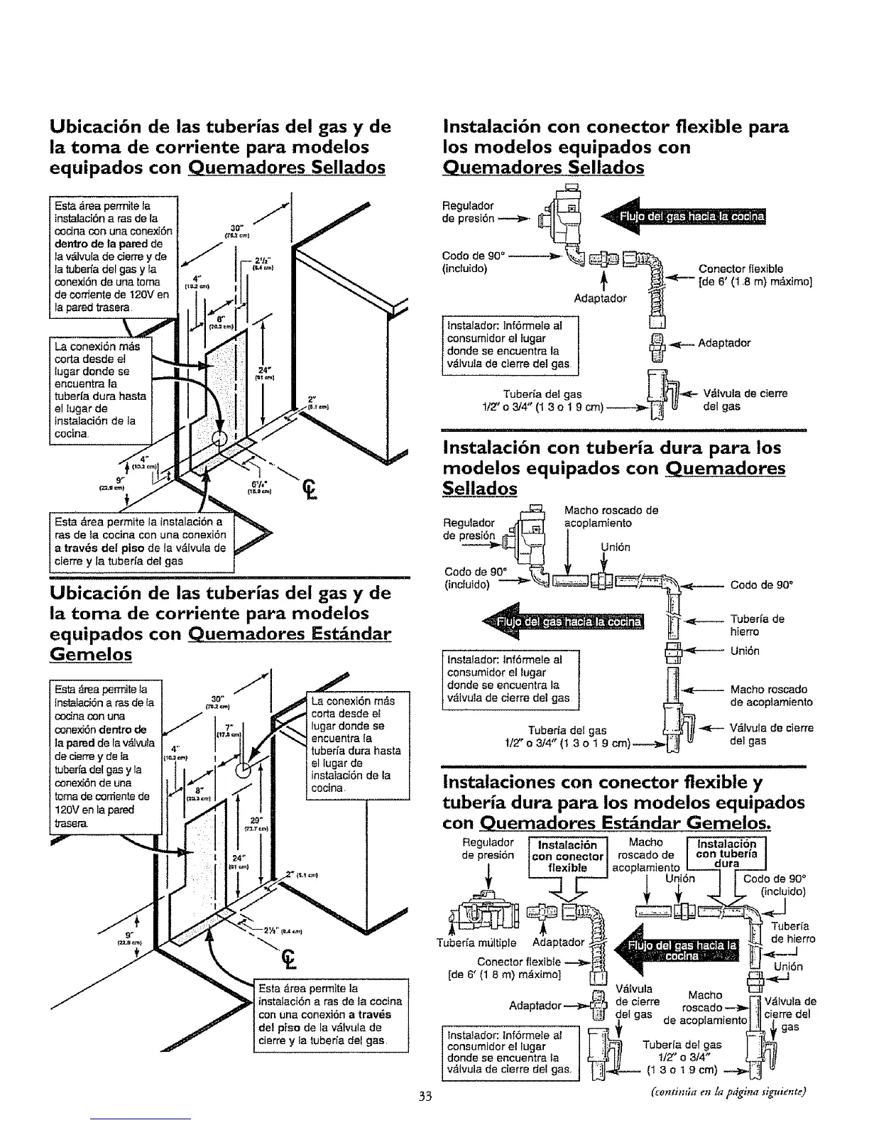 instalaci6n con conector flexible para