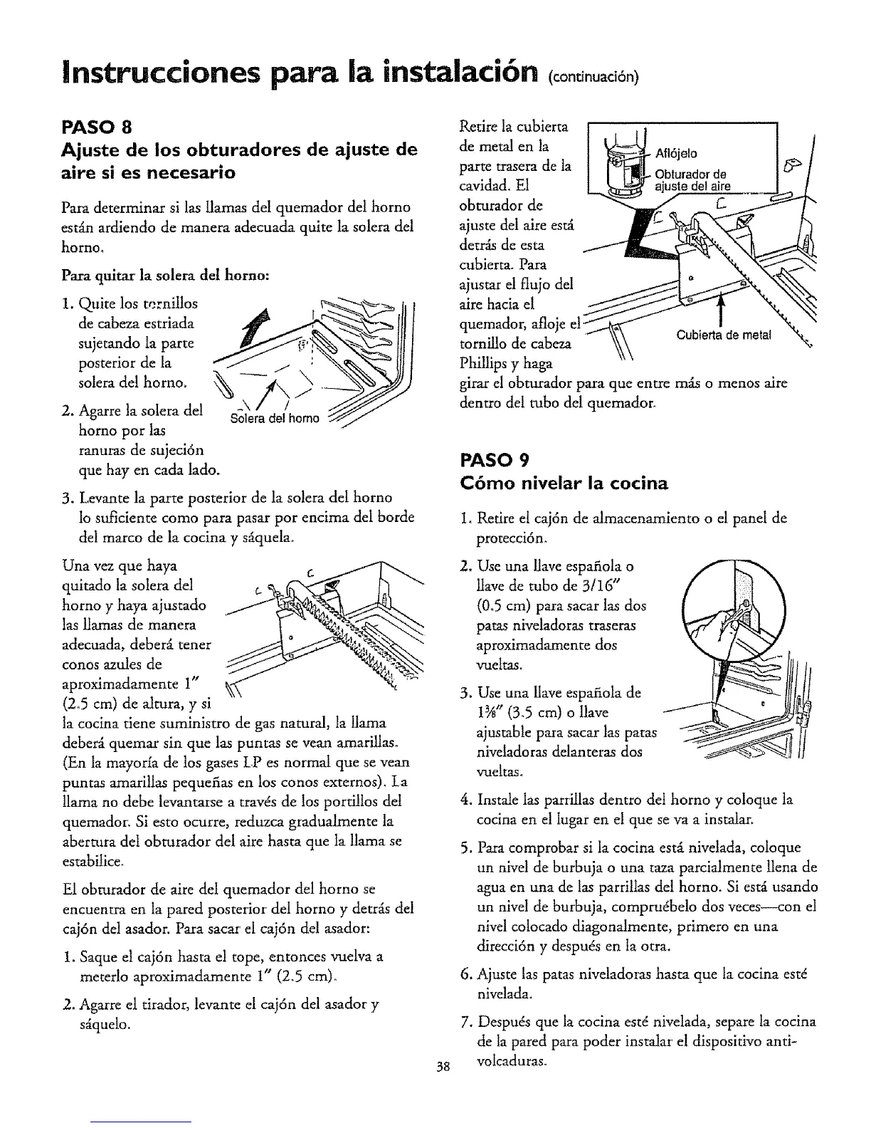7. Despuds que la cocina estd nivelada, separe la cocina