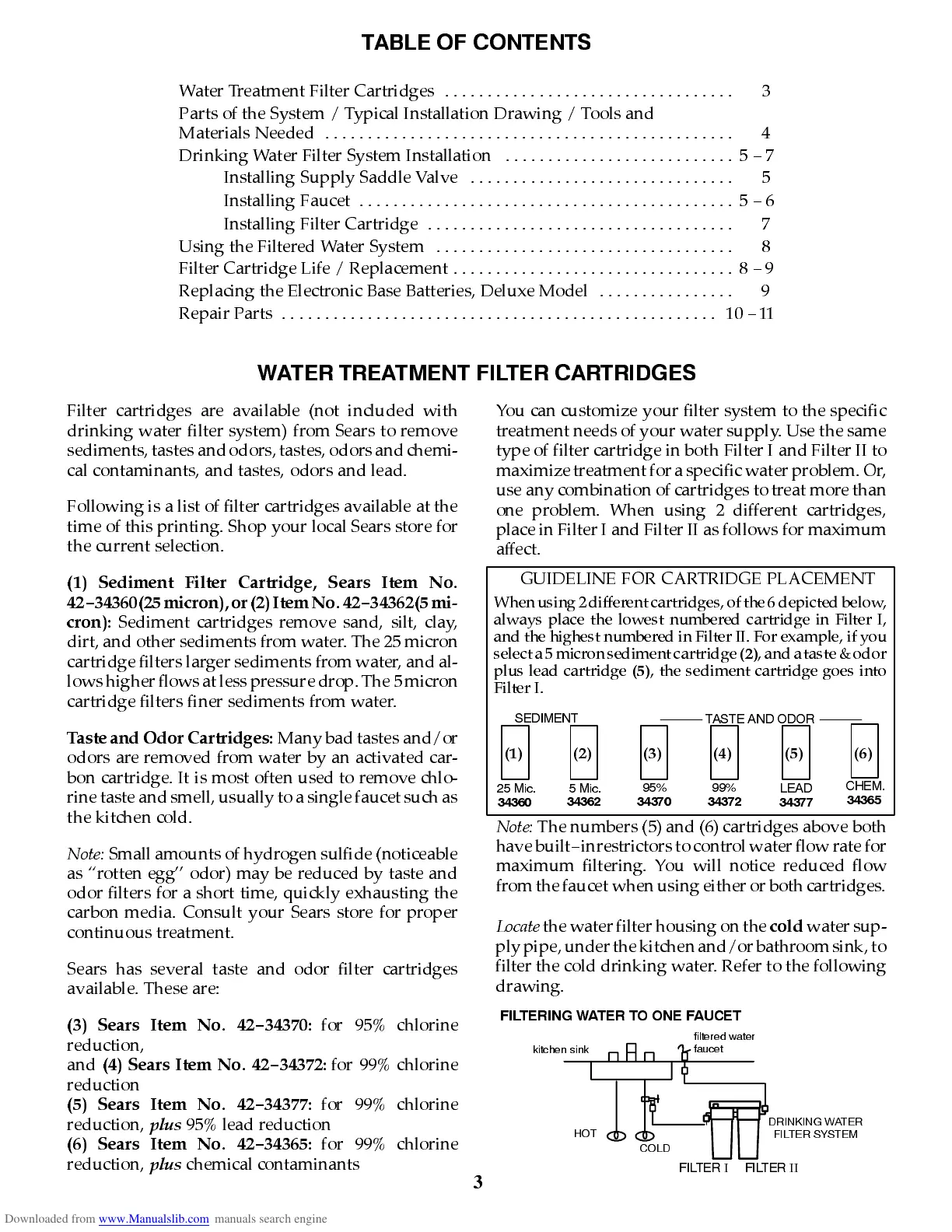 6HGLPHQW )LOWHU &DUWULGJH 6HDUV ,WHP 1R