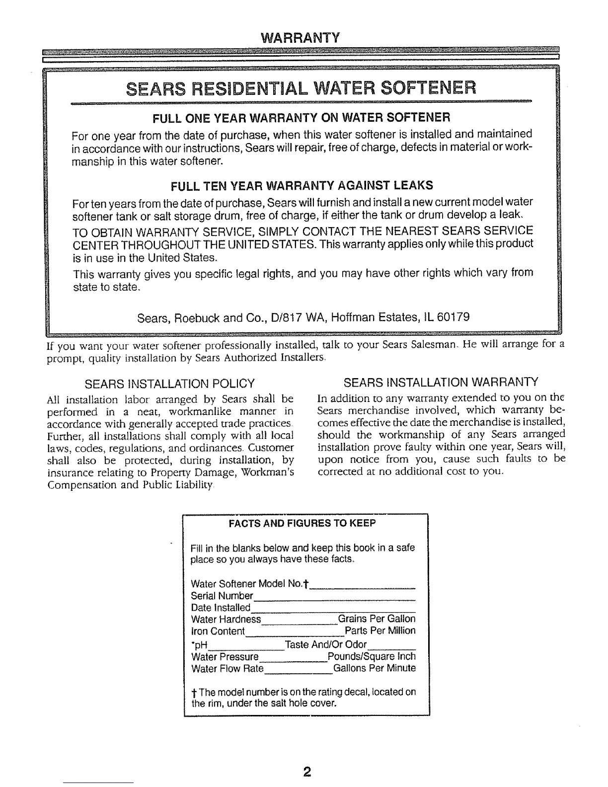 softener tank or salt storage drum, free of charge, if either the tank or drum develop a leak.