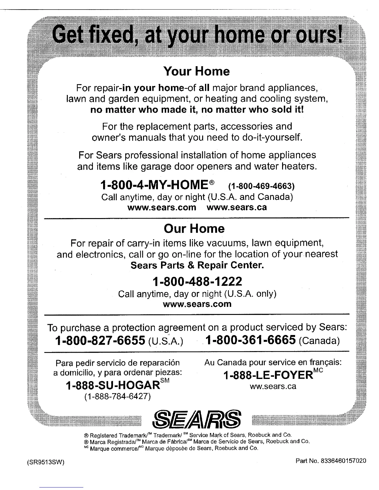 ® Marca Registrada! TM Marca de F&brica/_ Marca de Servicio de Sears, Roebuck and Co.