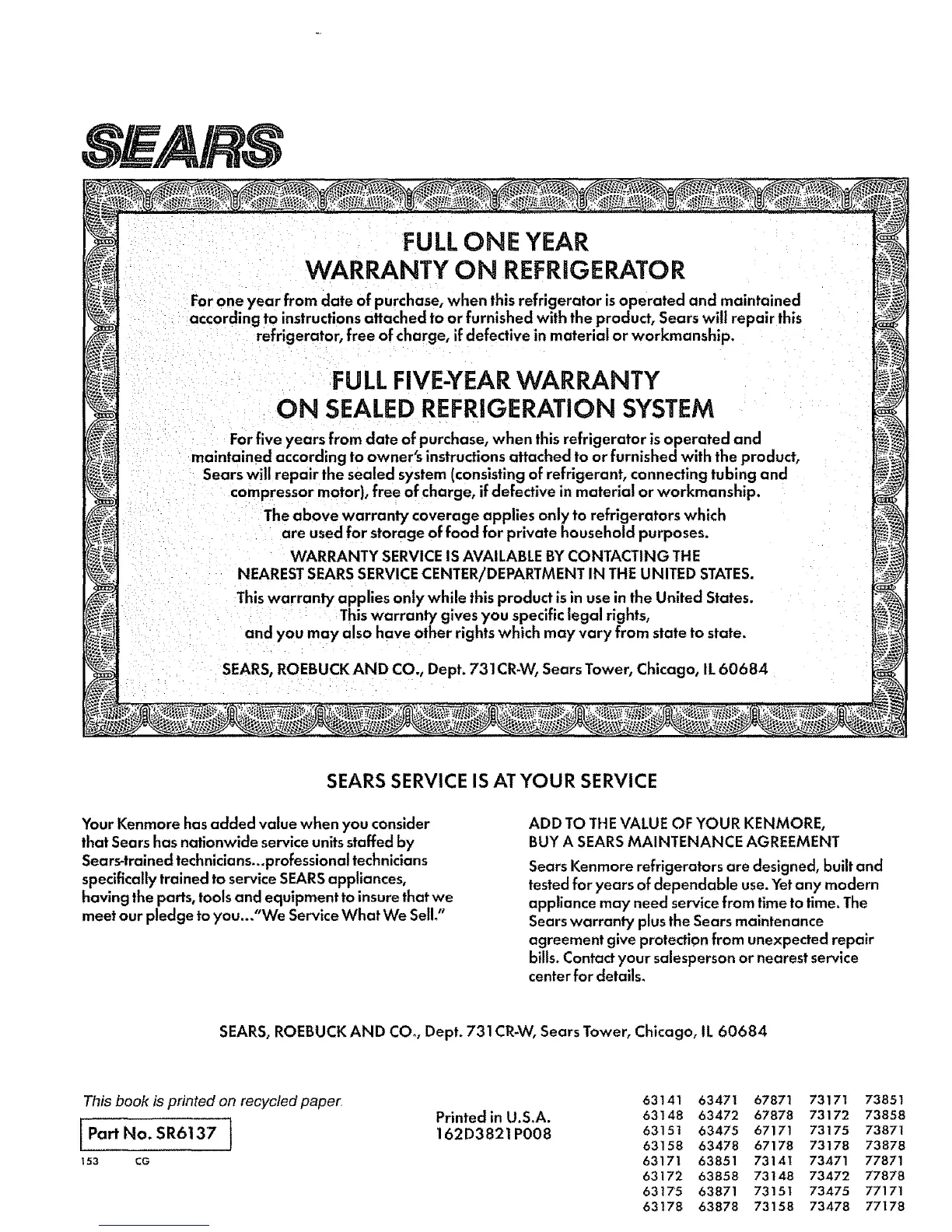 SEARS, ROEBUCK AND CO., Dept. 731CR-W, Sears Tower, Chicago, IL 60684