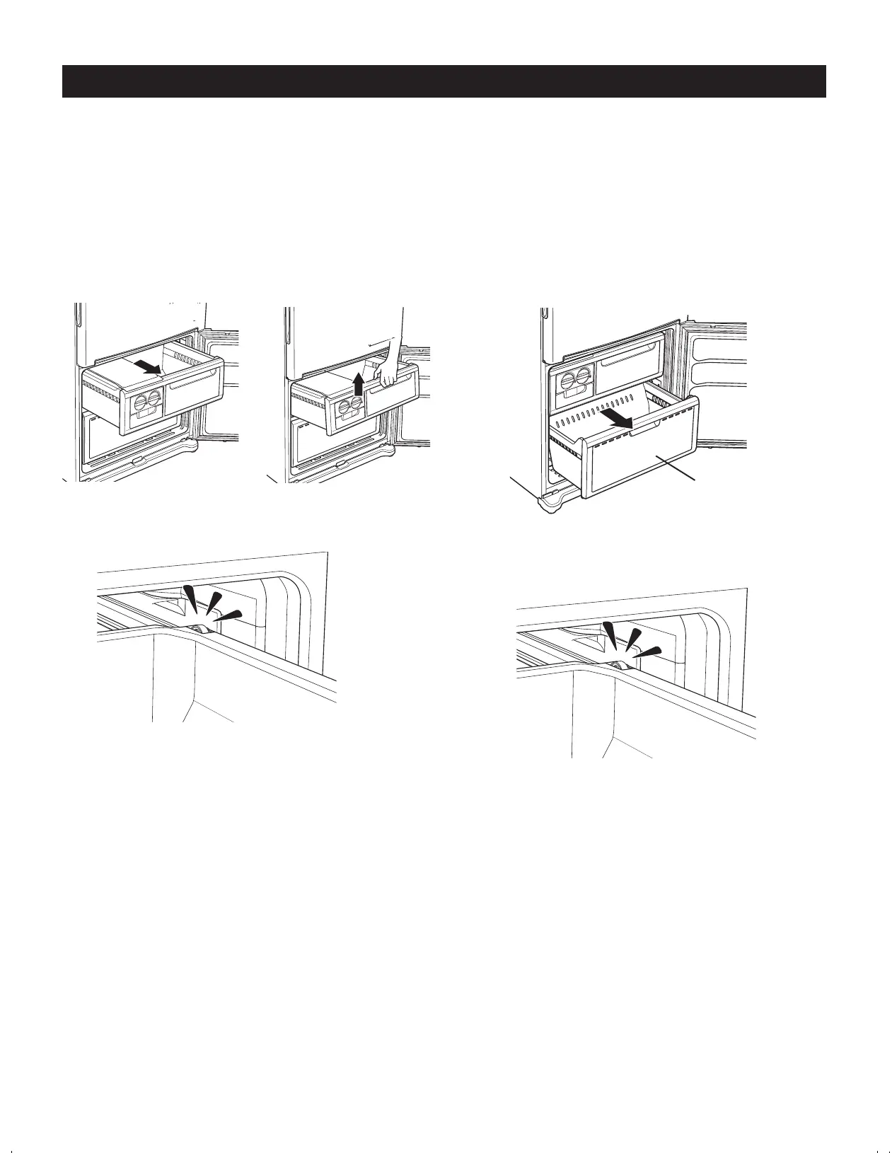 Pull out the freezer drawer bin. Tilt up the front of the