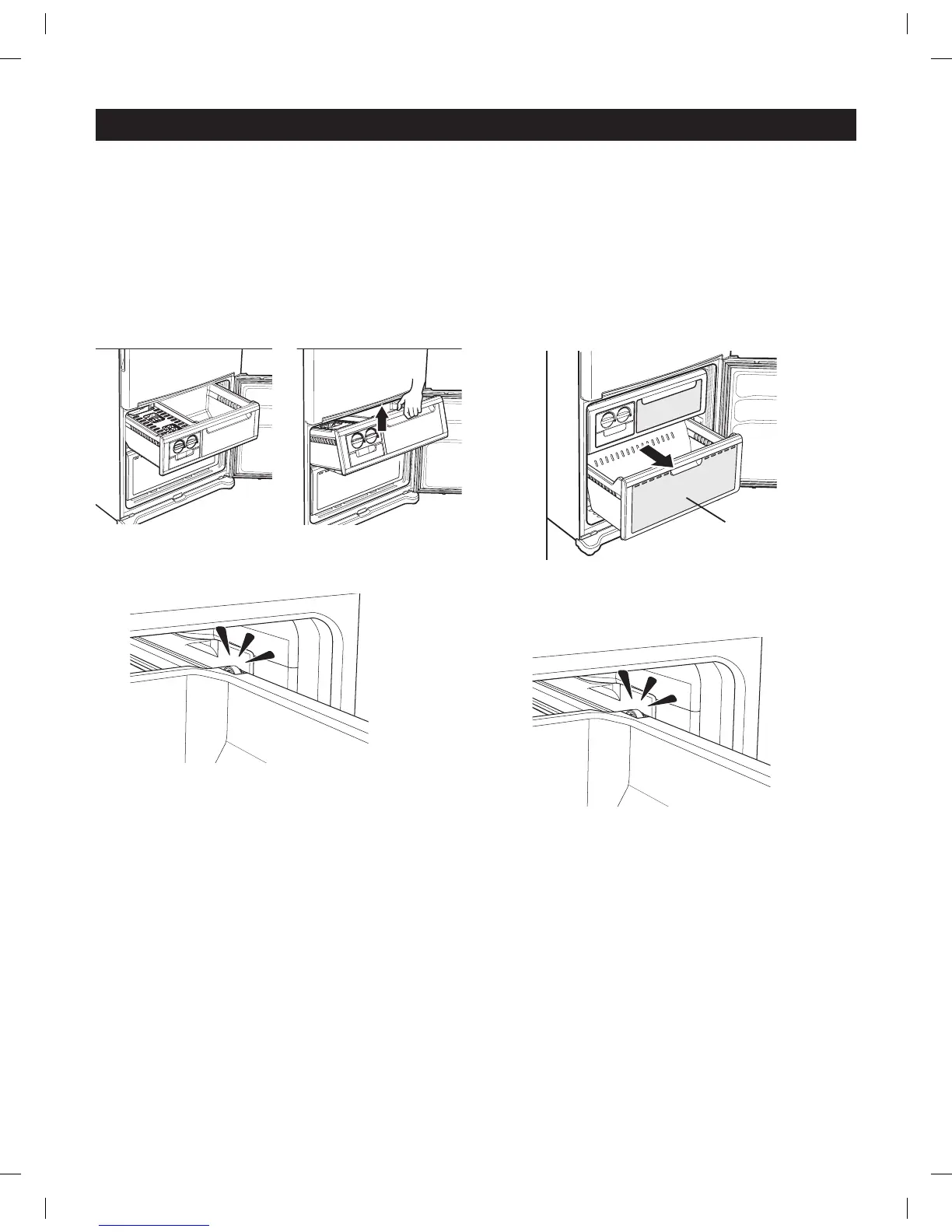 Pull out the freezer drawer bin. Lift the bin straight up to