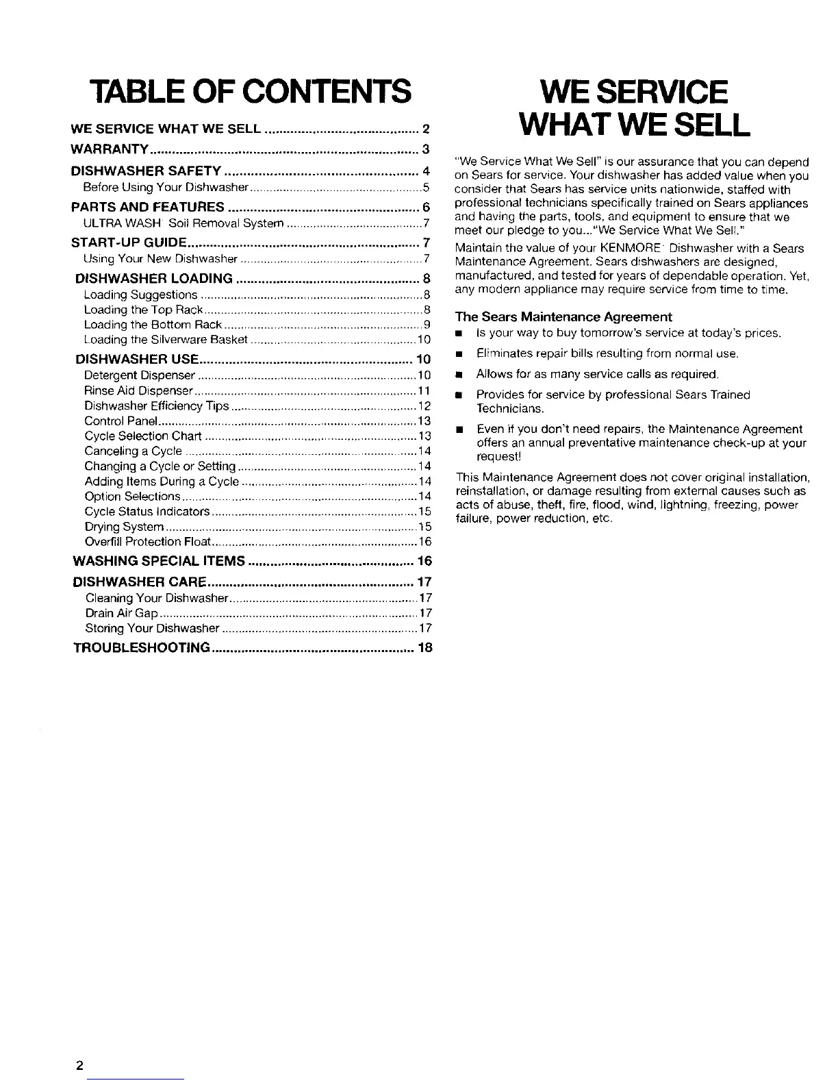Maintenance Agreement. Sears dishwashers are designed,