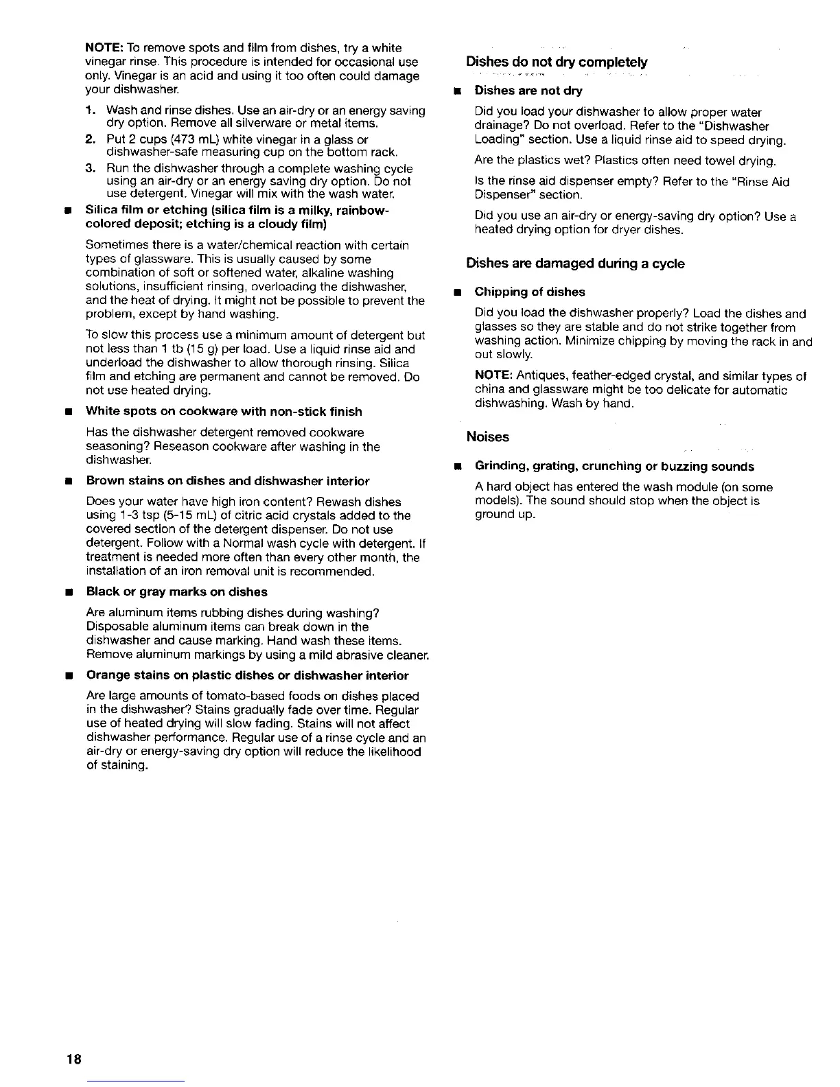 Is the rinse aid dispenser empty? Refer to the "Rinse Aid