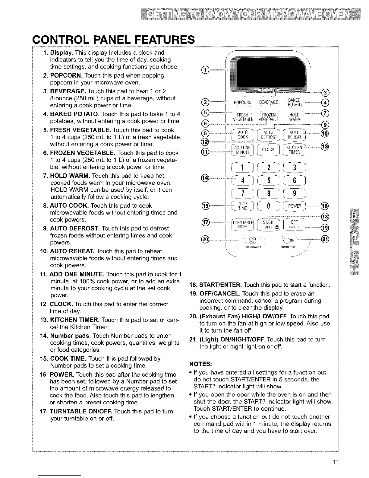 20. (Exhaust Fan) HIGH/LOW/OFF. Touch this pad