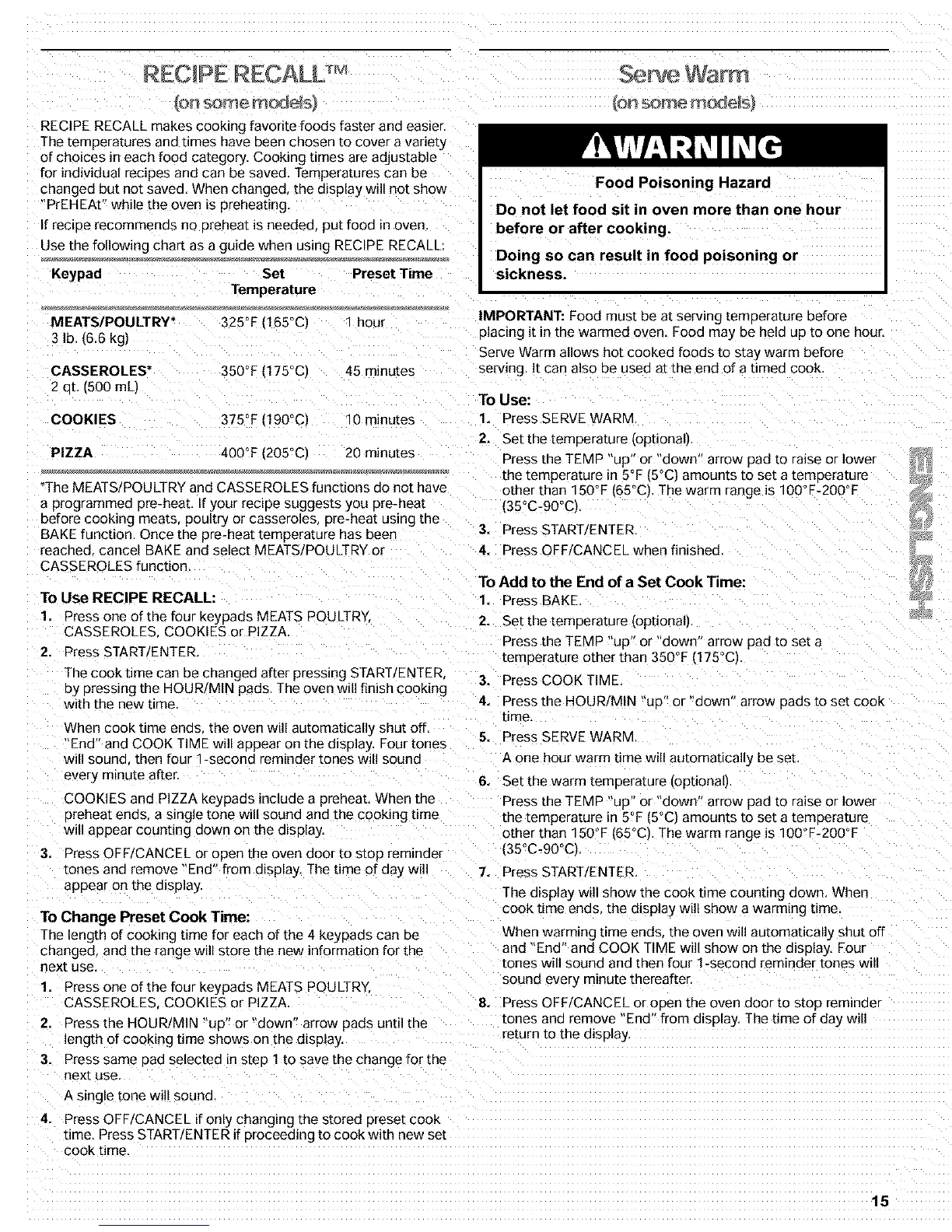 IMPORTANT: Food must be at serving temperature before