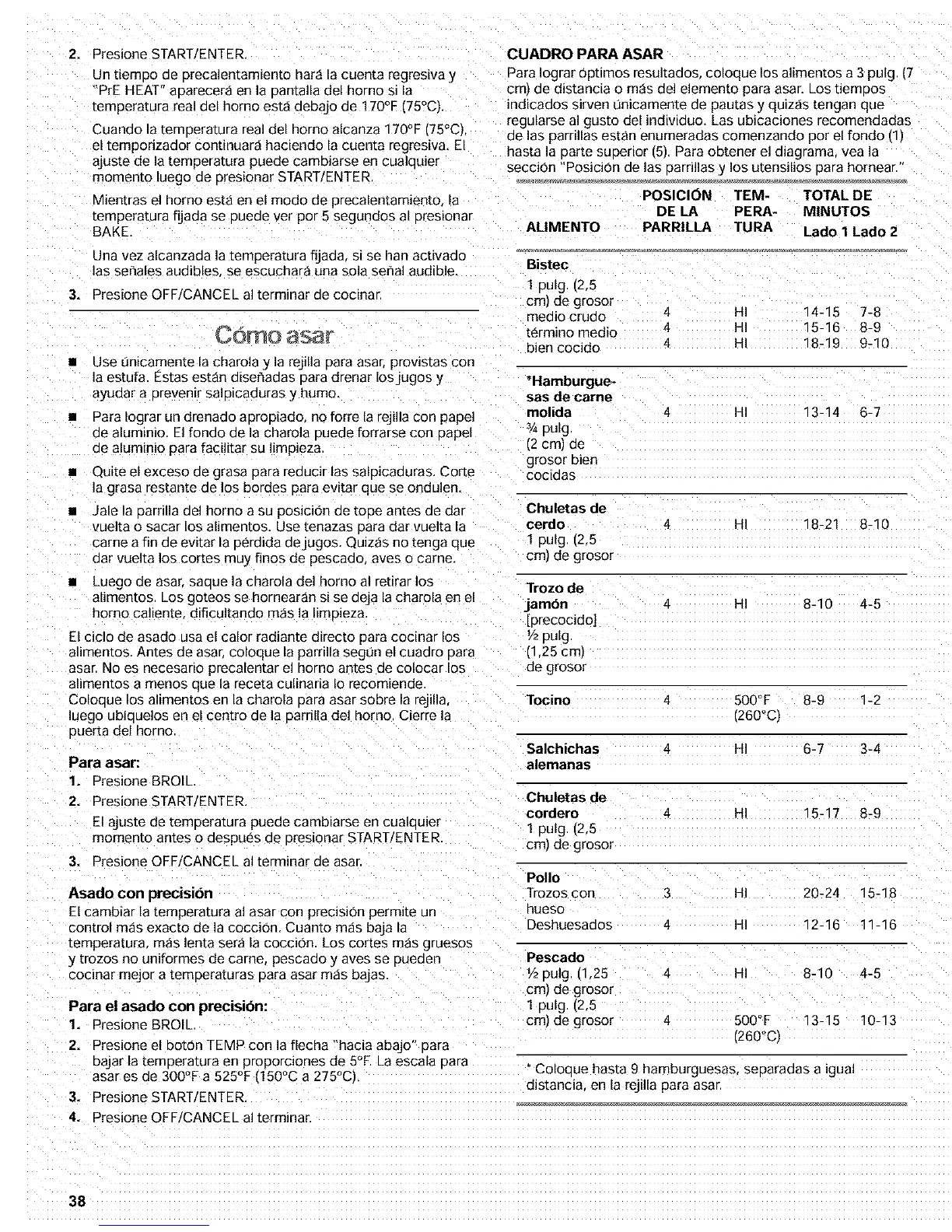 alimentos. Antes de asar. coloque la parrilla segun el cuaaro oara