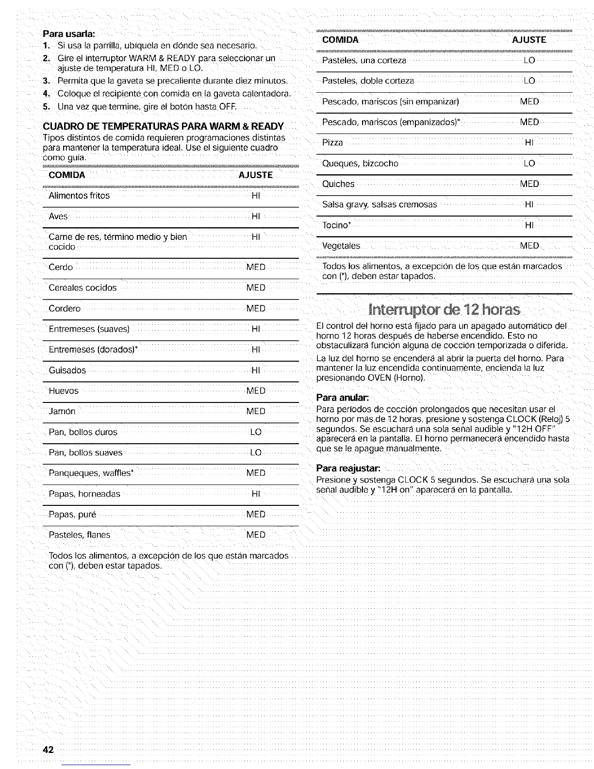 Dara mantener la tampera[ura ideal. Use el siguiente cuadro