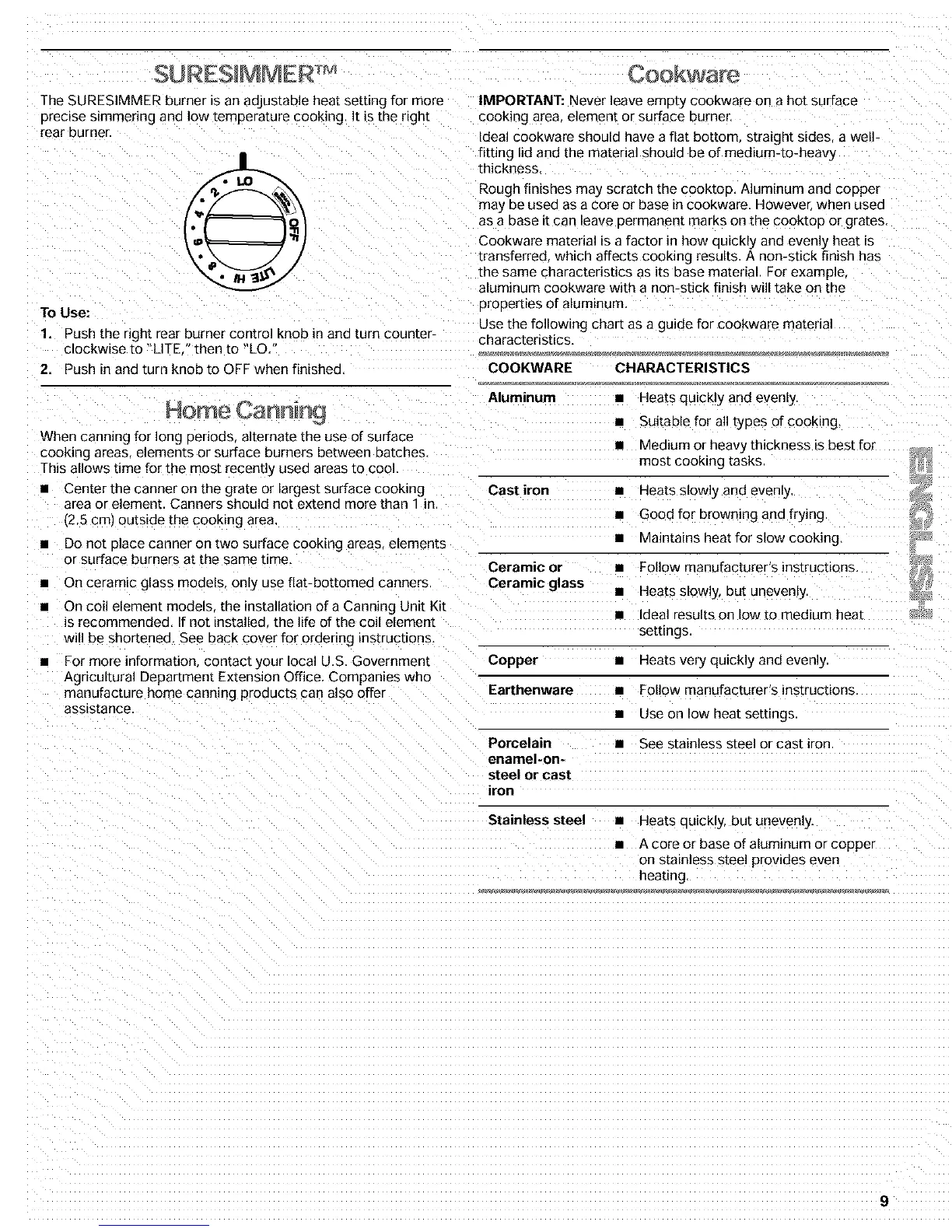 • Do not Dlace canner on two surface cooking areas elements