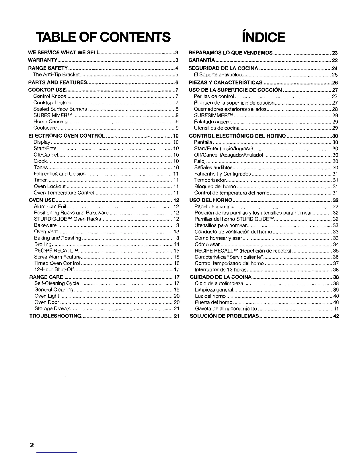 RECIPE RECALL TM (Repeticion de recetas) ............................. 35