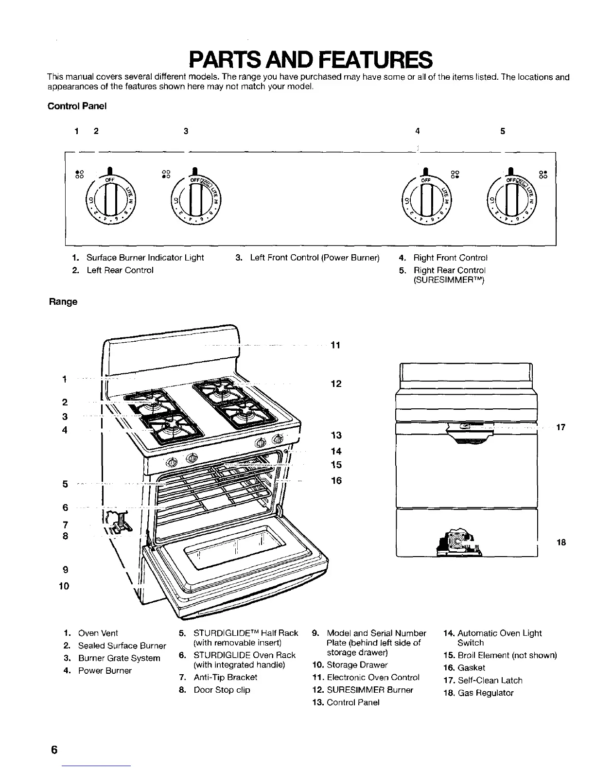 This manual covers several different models. The range you have purchased may have some or all of the items listed. The locations and
