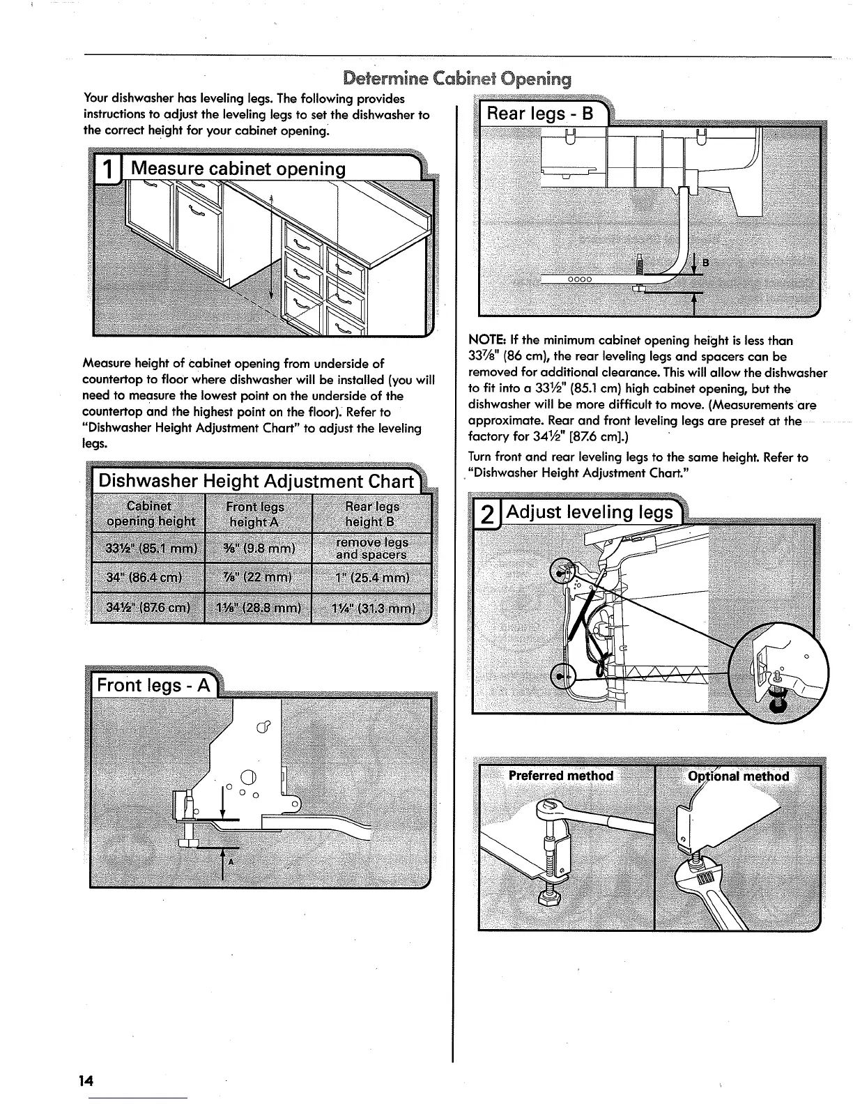 "Dishwasher Height Adjustment Chart" to adjust the leveling