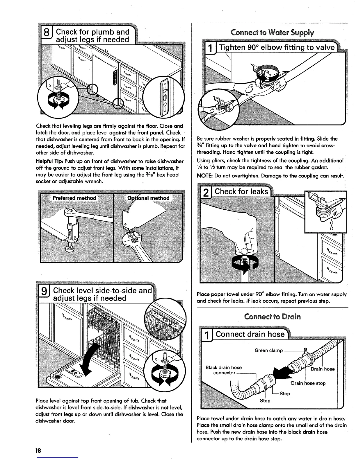 needed, adjust leveling leg until dishwasher is plumb. Repeat for