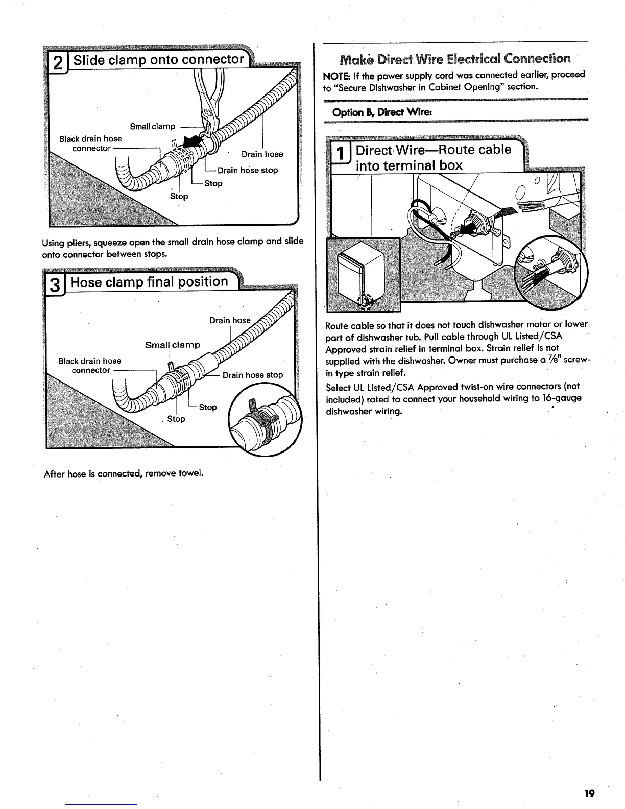 part of dishwasher tub. Pull cable through UL Listed/CSA