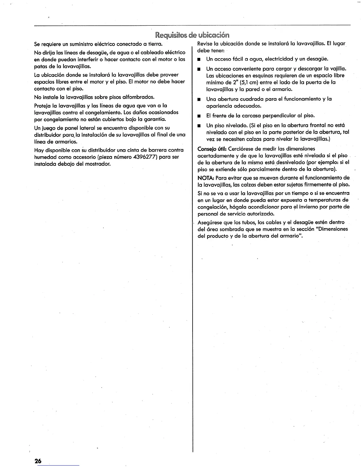 Revise la ubicaci6n donde se instalar6 la lavavajillas; El lugar