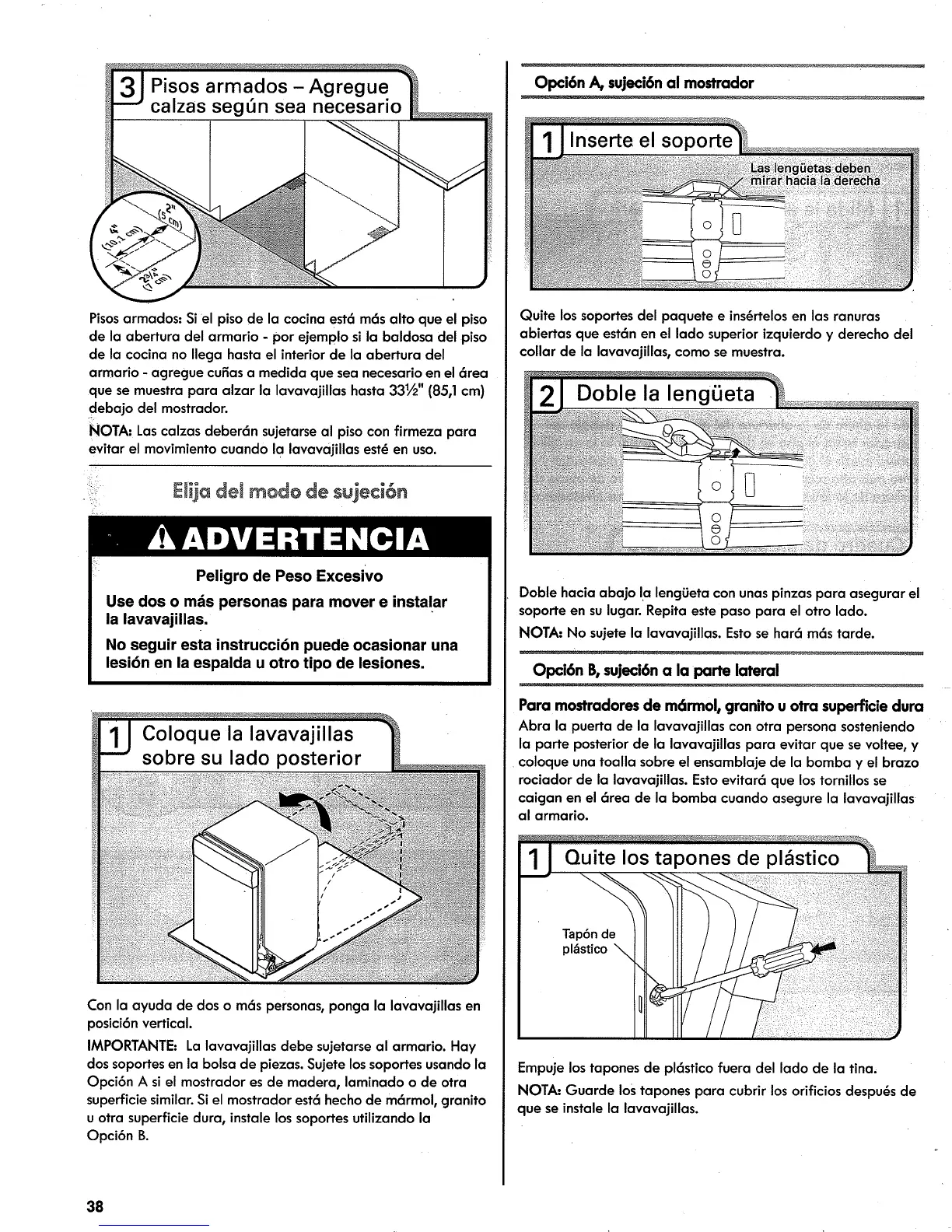 NOTA= No sujete la lavavajillas. Esto se bar6 m6s tarcle.