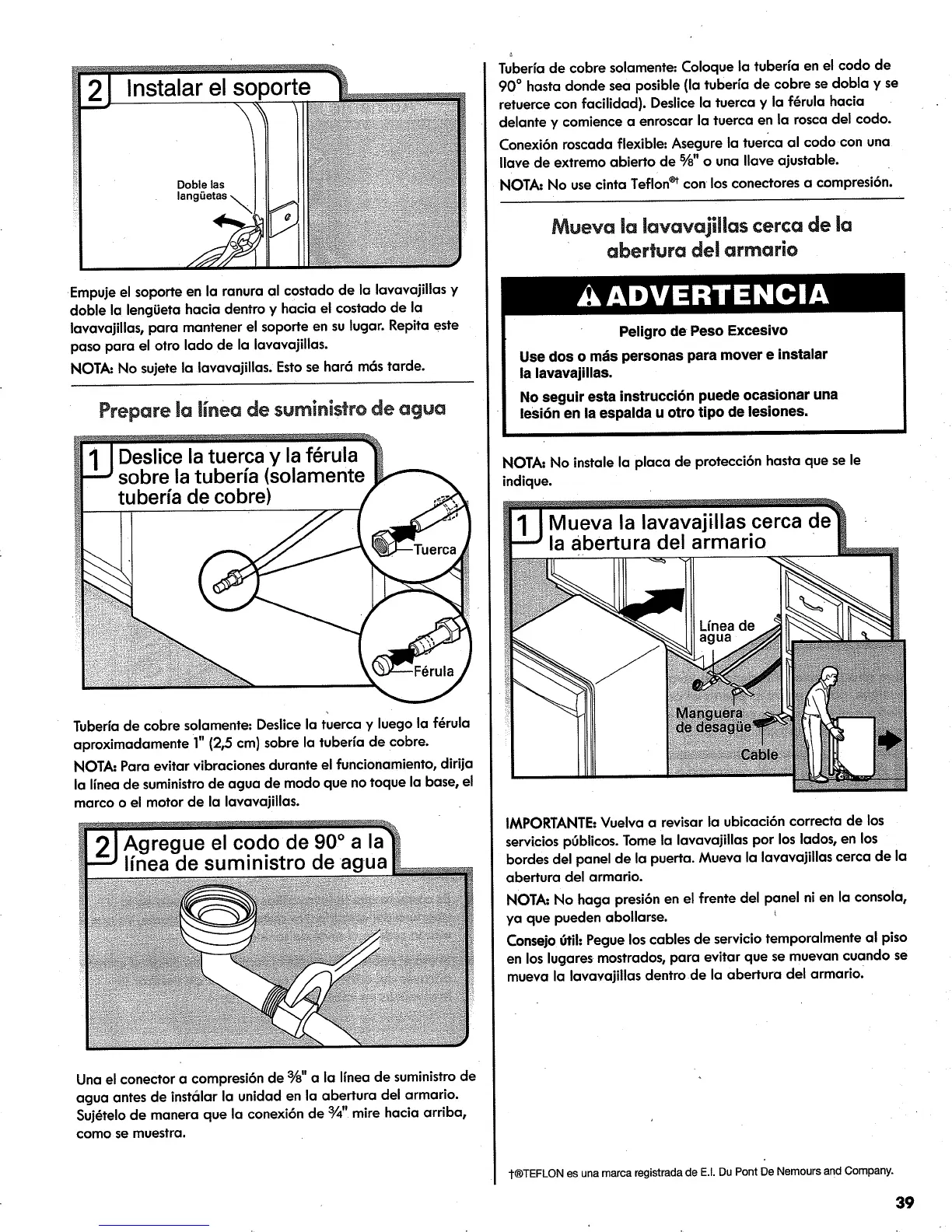NOT_ No sujete la lavavajillas. Esto se hat6 m6s tarde.