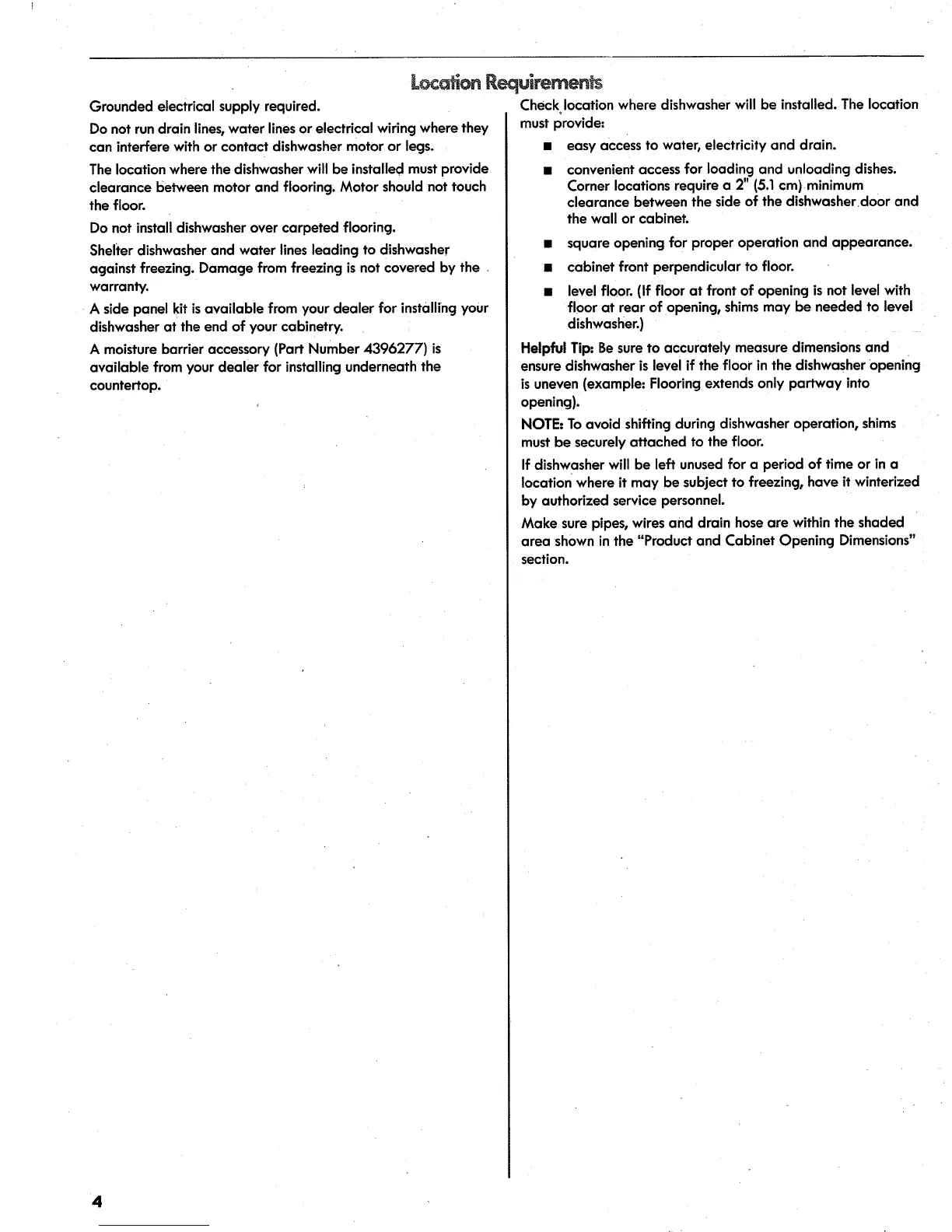 ensure dishwasher is level if the floor in the dishwasher Opening