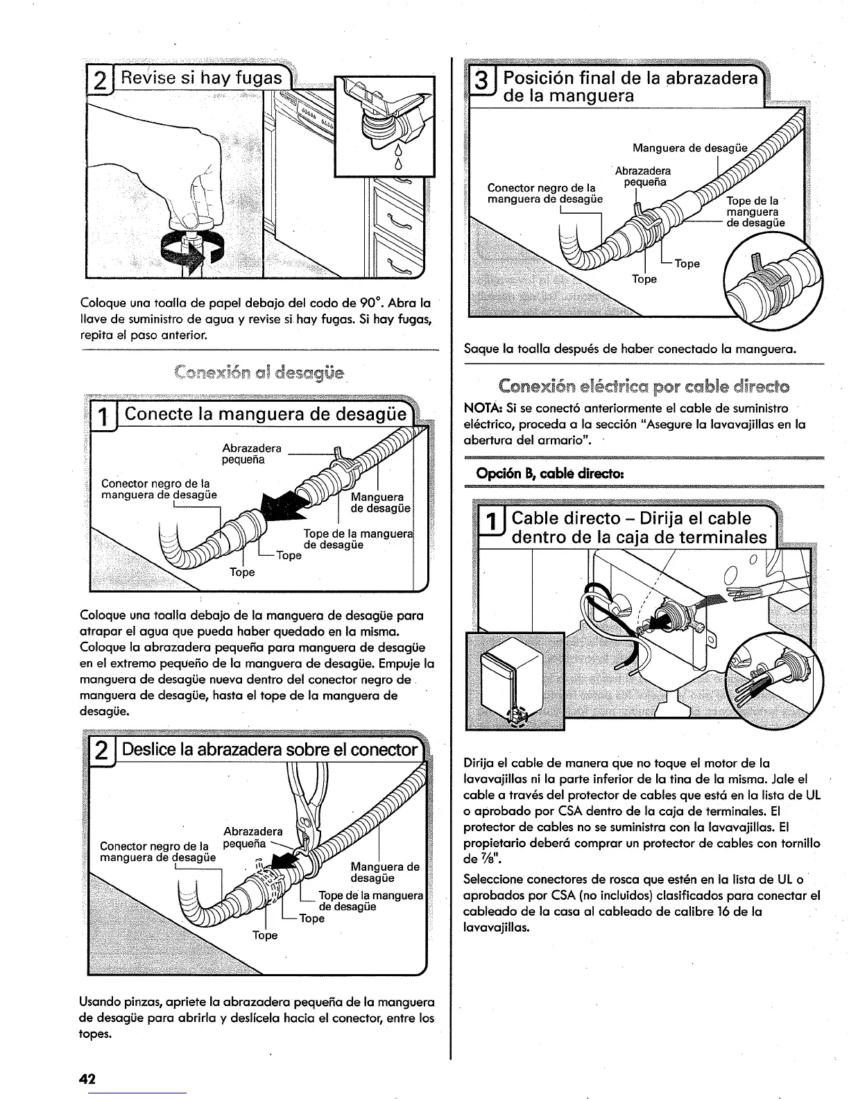 Coloque la abrazadera pequefia para manguera de desagiJe