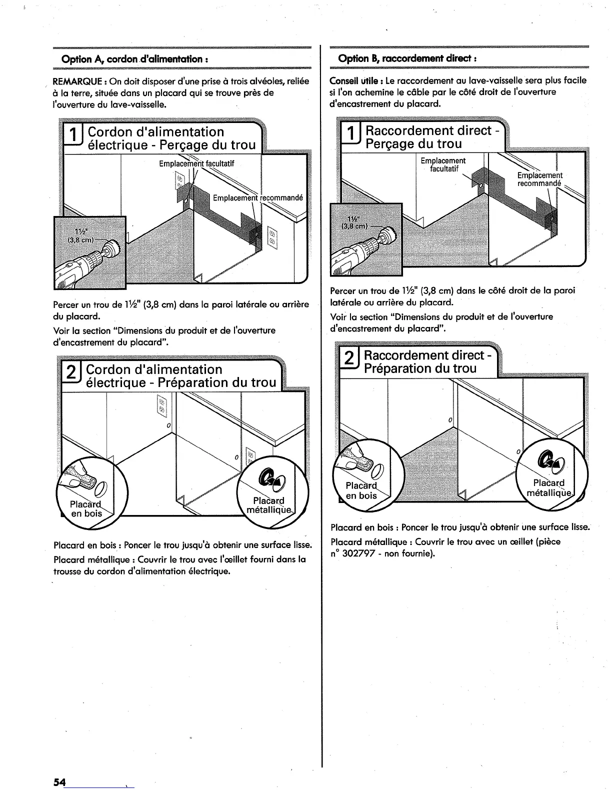 Percer un trou de 11,_'' (3,8 cm) dans le c6t_ clroit de la paroi