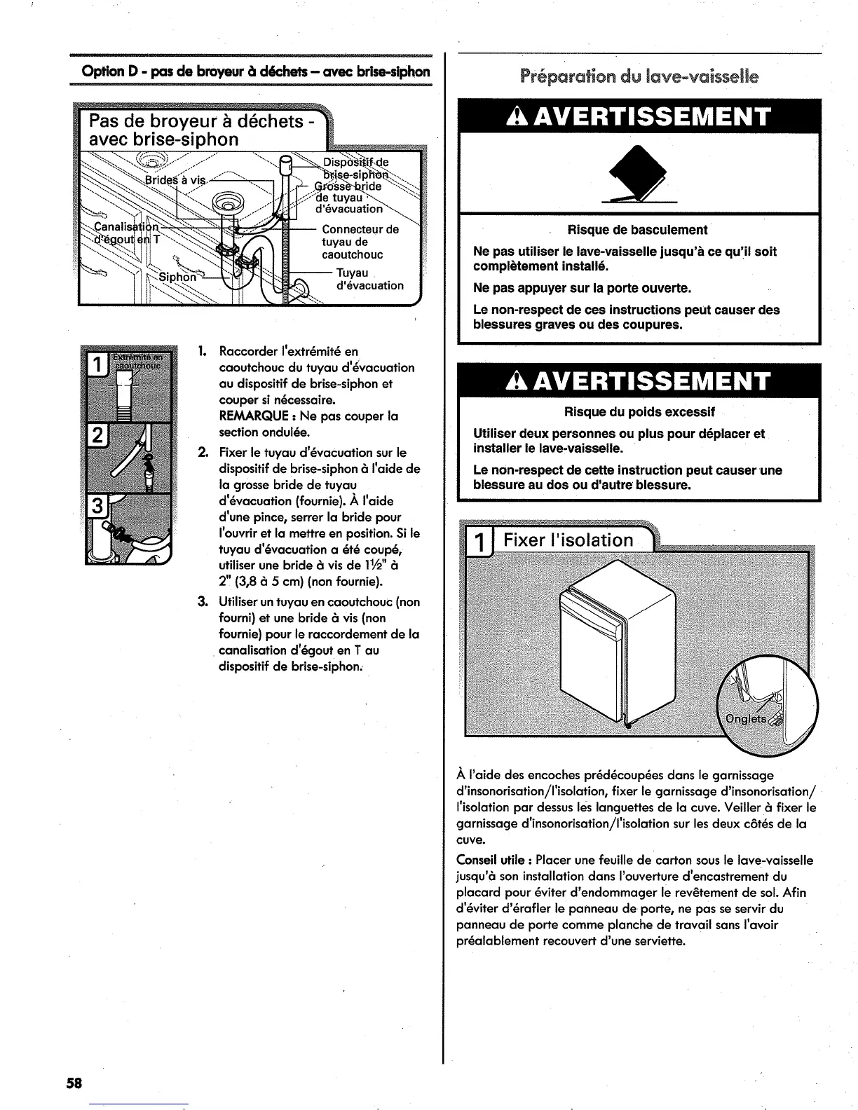 Option D - pas de broyeur b d6chets - avec brise-siphon