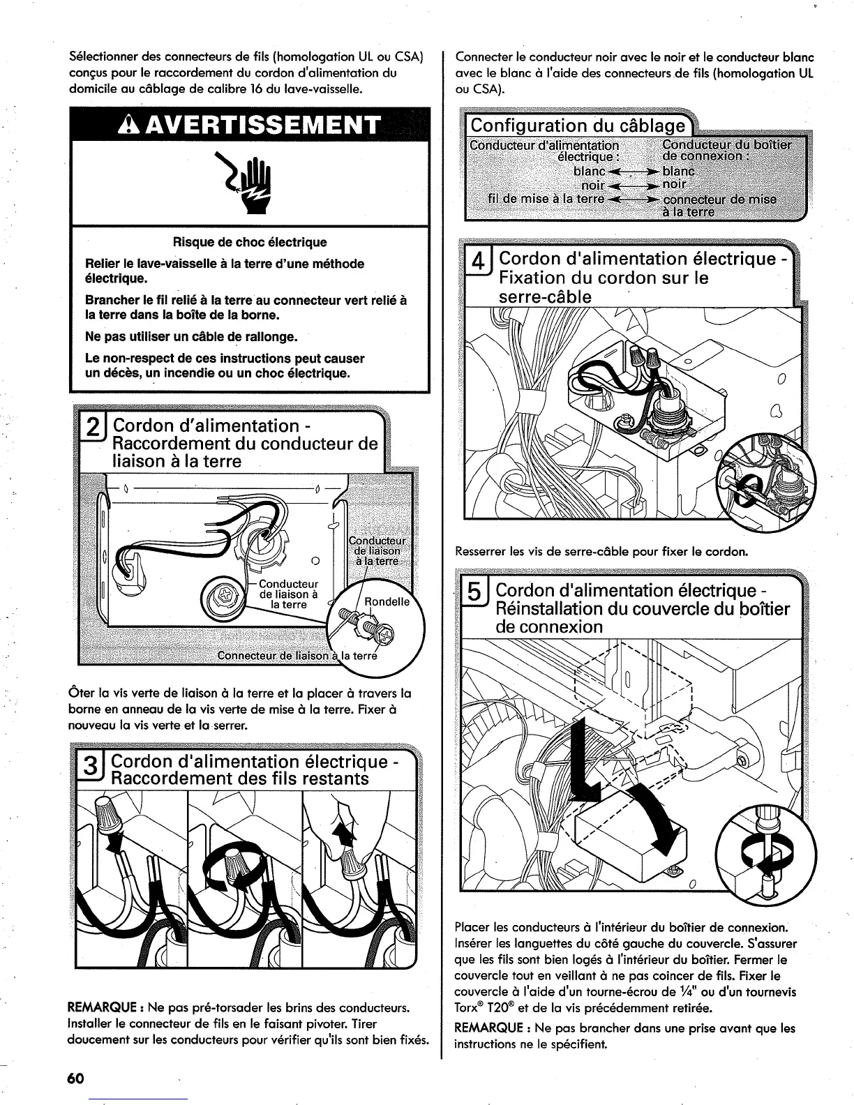 REMARQUE • Ne pas prd-torsader les brins des conducteurs.