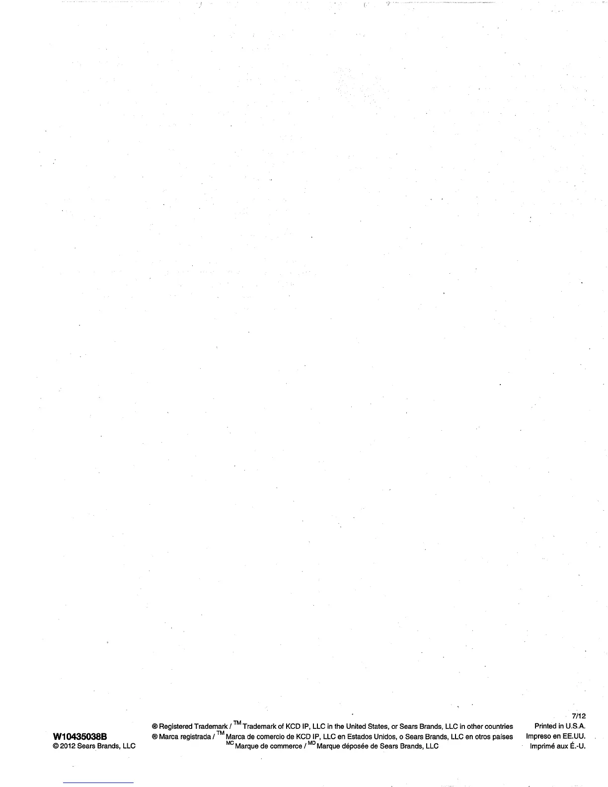® Marca reglstrada / Marca de comercJo de KCD IP, LLC en Estados Unidos, o Sears Brands, LLC en otros paises