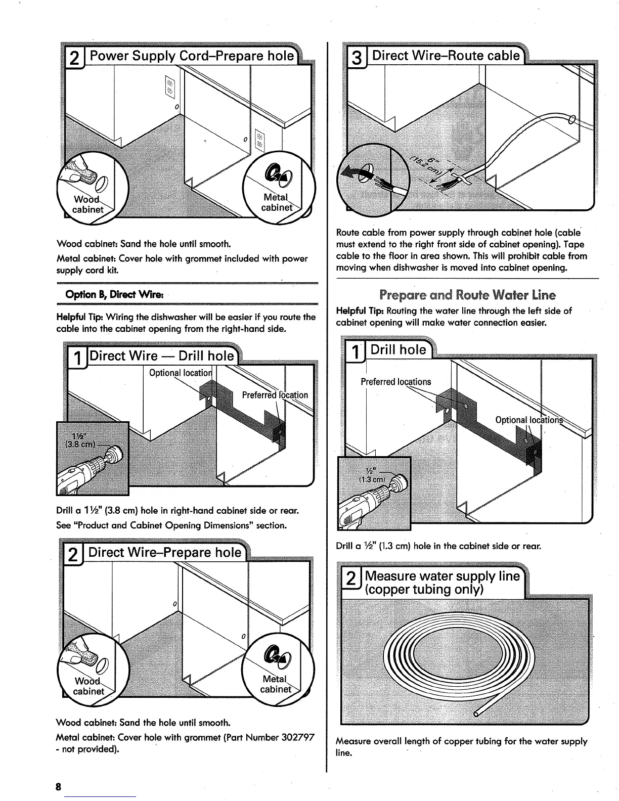 Drill a 11/_,,(3.8 cm) hole in right-hand cabinet side or rear.