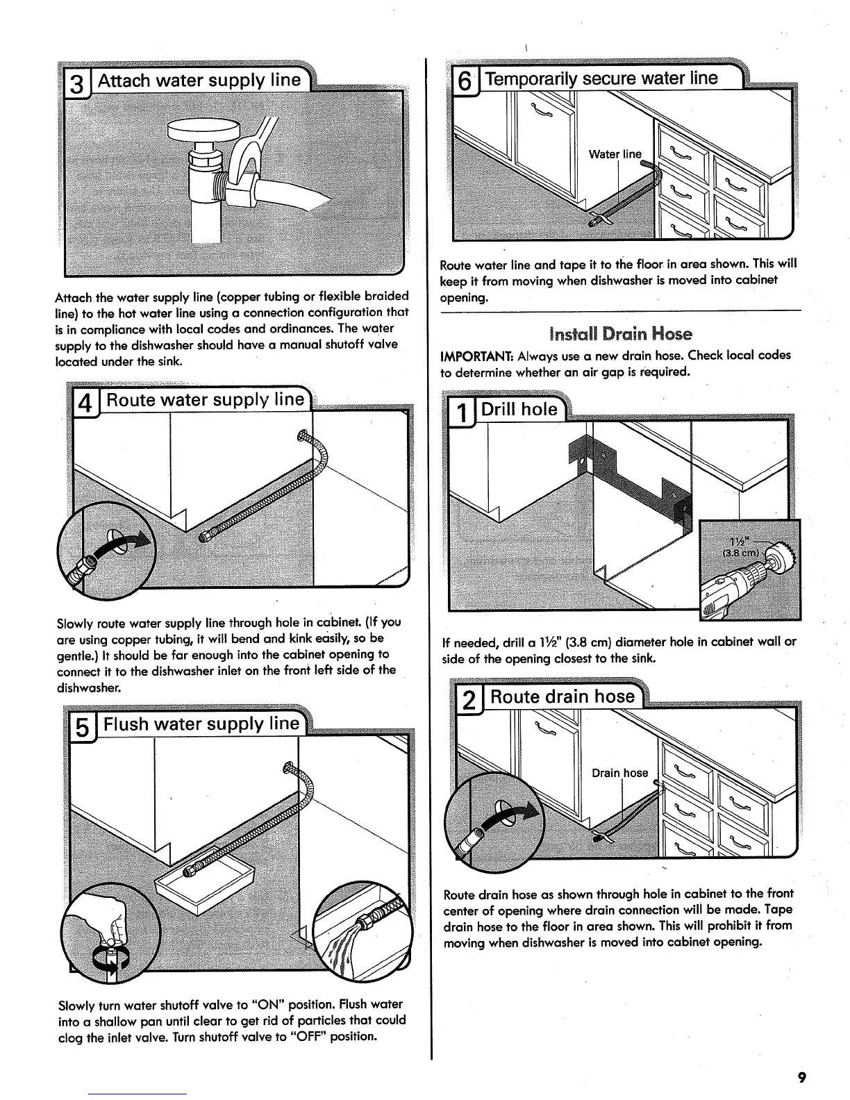 Slowly turn water shutoff valve to "ON" position. Flush water